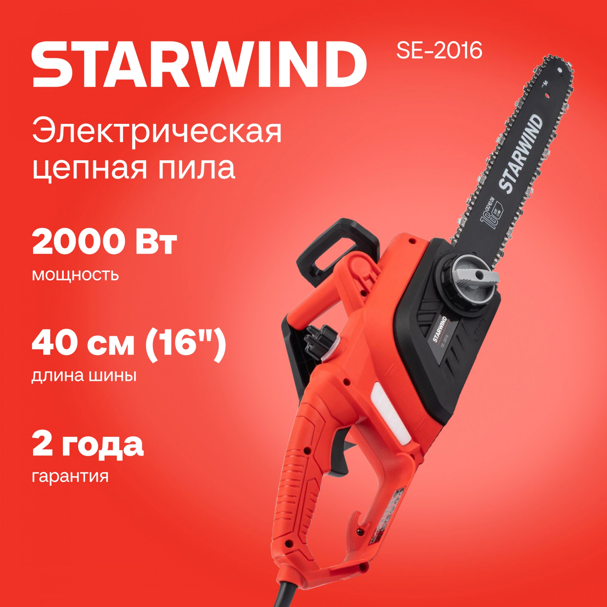 Цепная пила Starwind SE-2016 от сети 2000Вт 1л.с. дл.шины:16" (40cm)