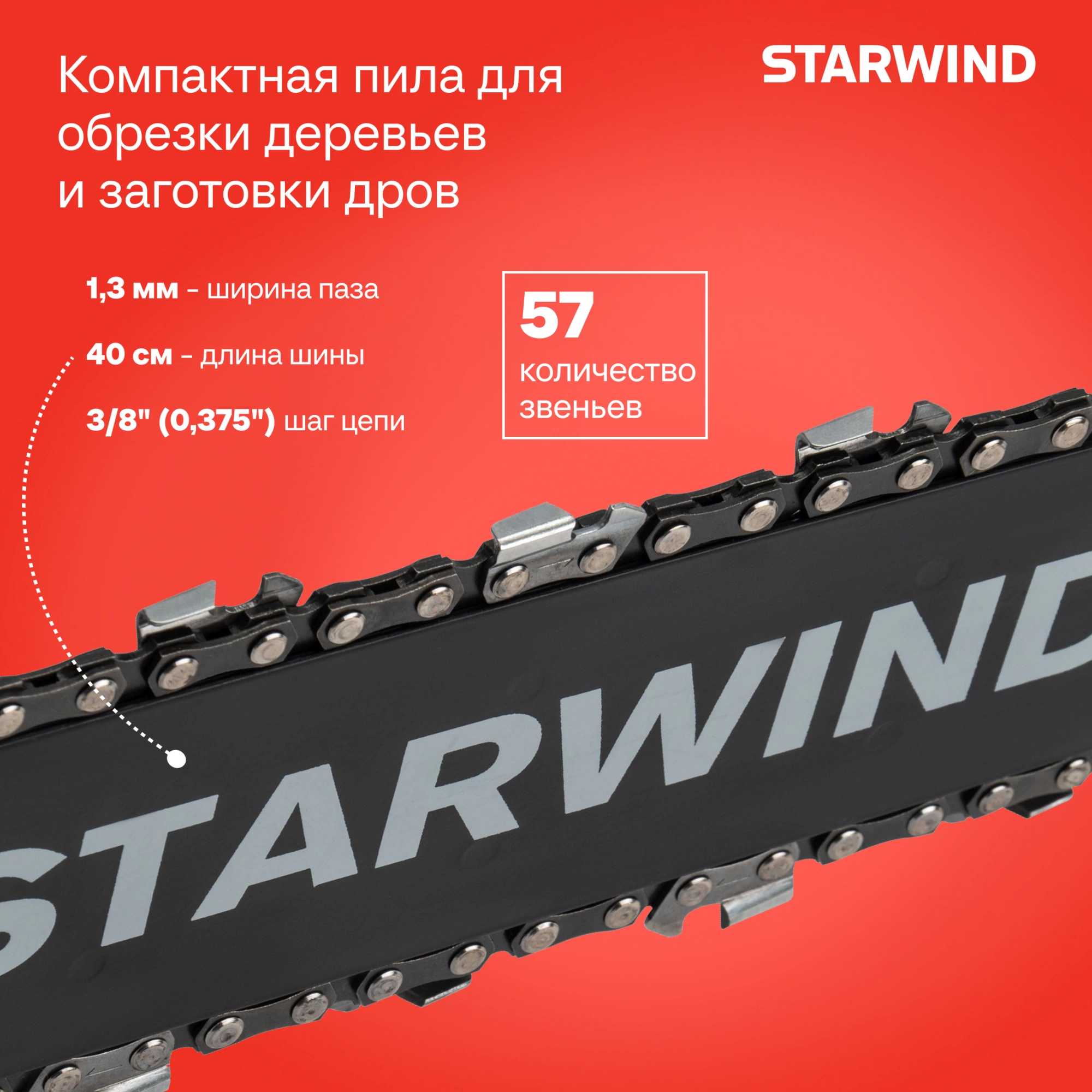 - Ширина паза цепи1.3 мм