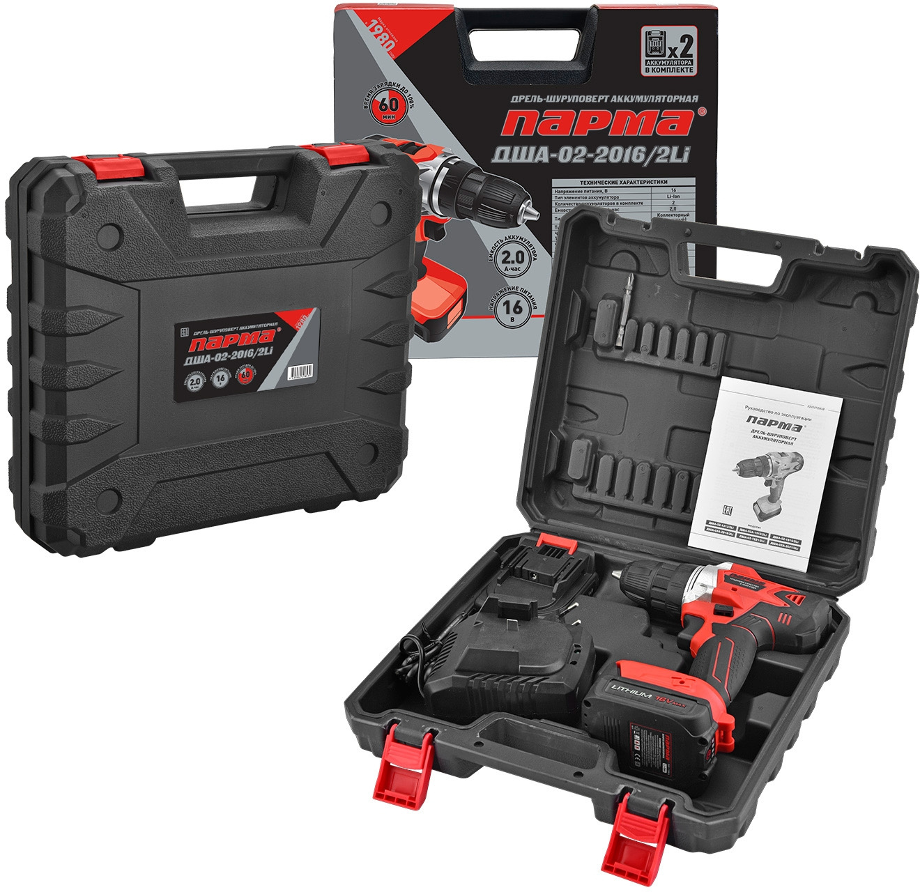 Дрель-шуруповерт Парма ДША-02-2016/2Li аккум. патрон:быстрозажимной (кейс в комплекте) (02.021.00015)