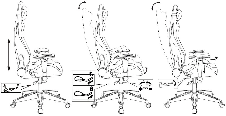 - Регулировкавысоты (газлифт), жесткости качания, положения подлокотников