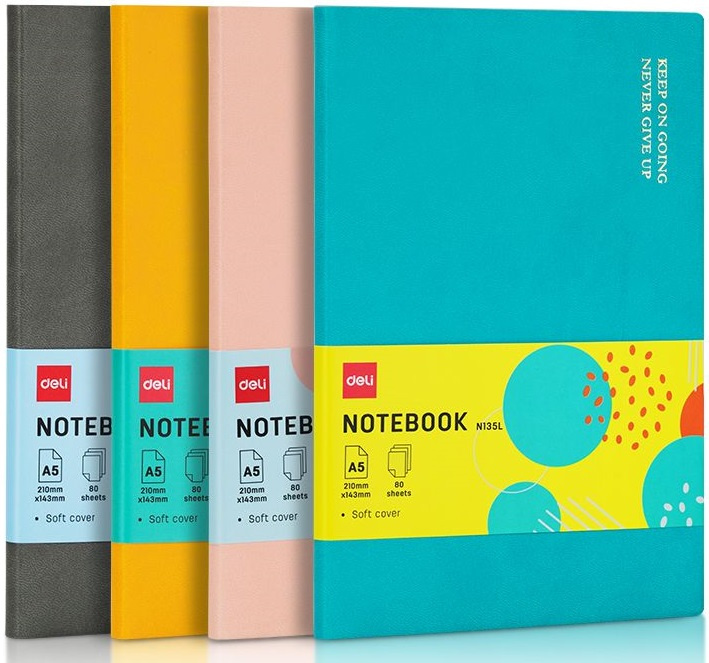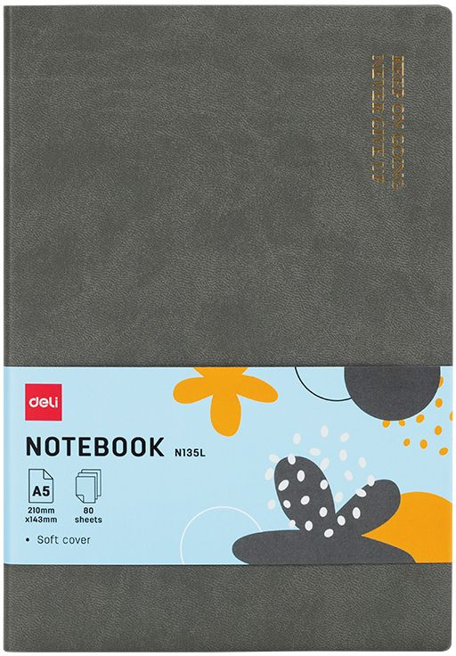 Блокнот Deli EN135LGREY A5 210х143мм искусст. кожа 80л линейка мягкая обложка серый
