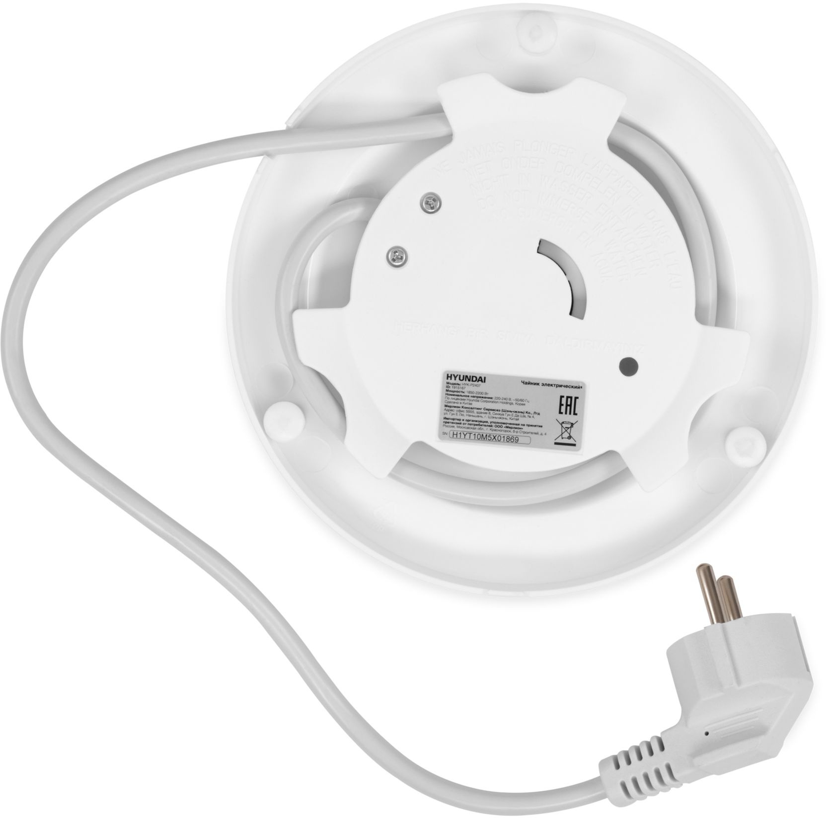 Чайник электрический Hyundai HYK-P2407 1.7л. 2200Вт белый/голубой корпус: пластик