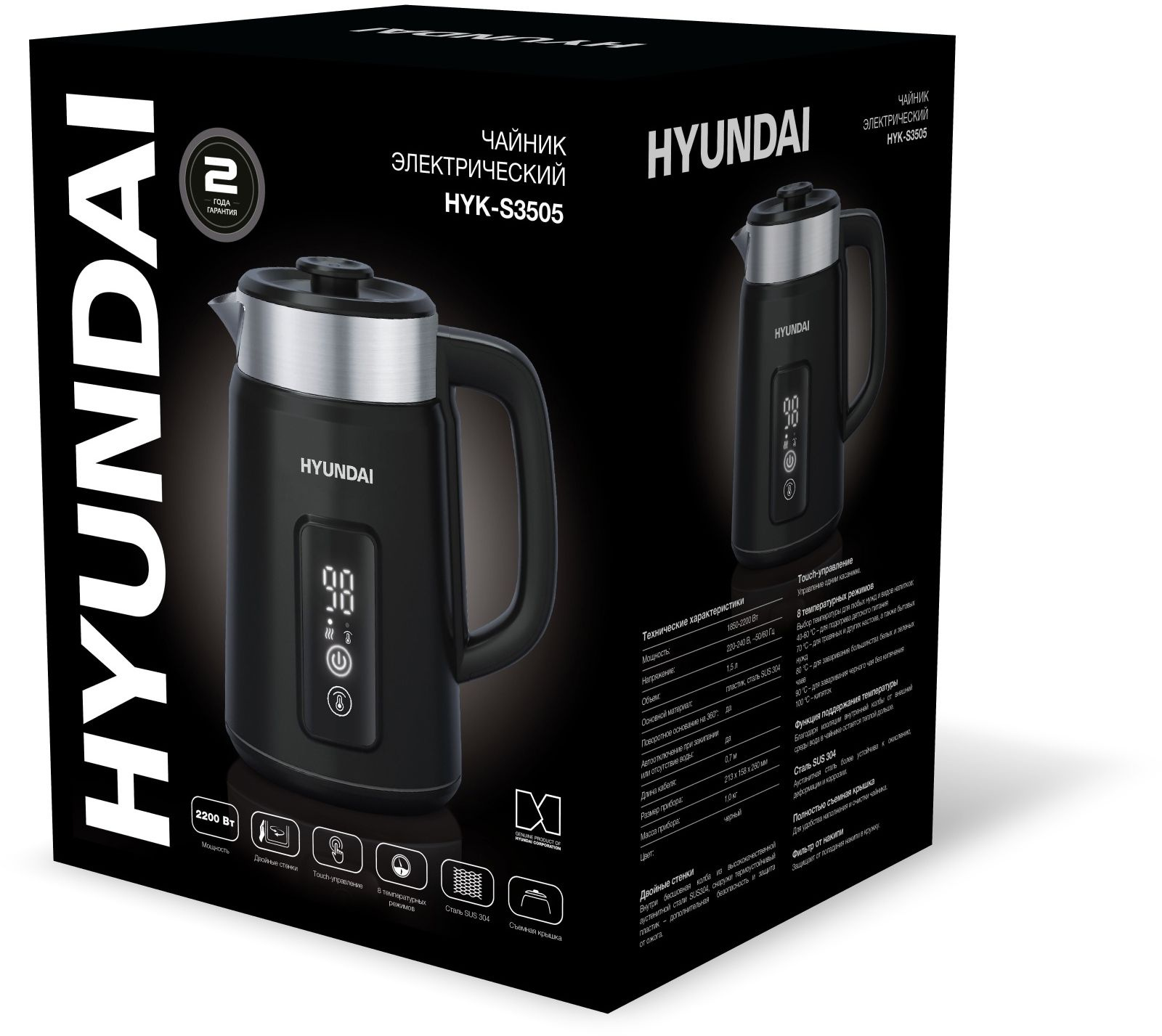 Чайник электрический Hyundai HYK-S3505 1.5л. 2200Вт черный корпус: металл/пластик