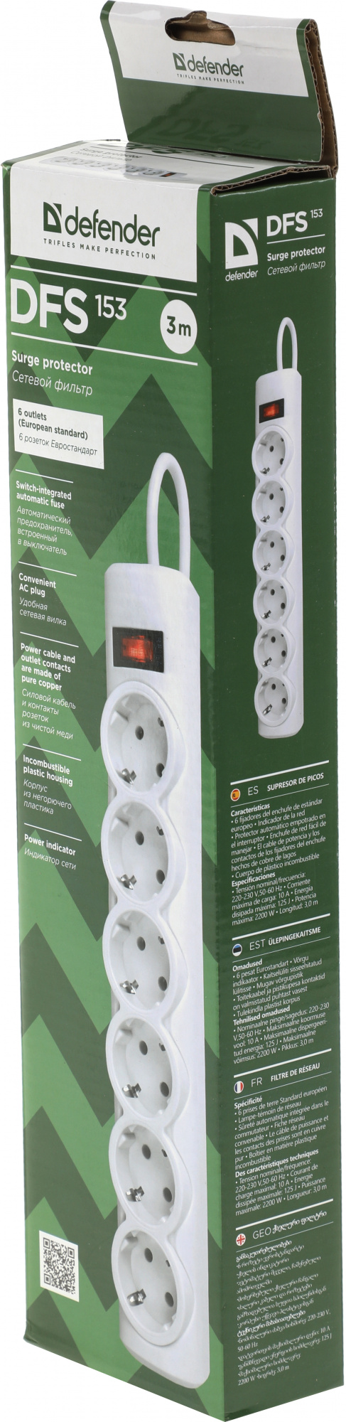 Сетевой фильтр Defender DFS 153 3м (6 розеток) белый (коробка)
