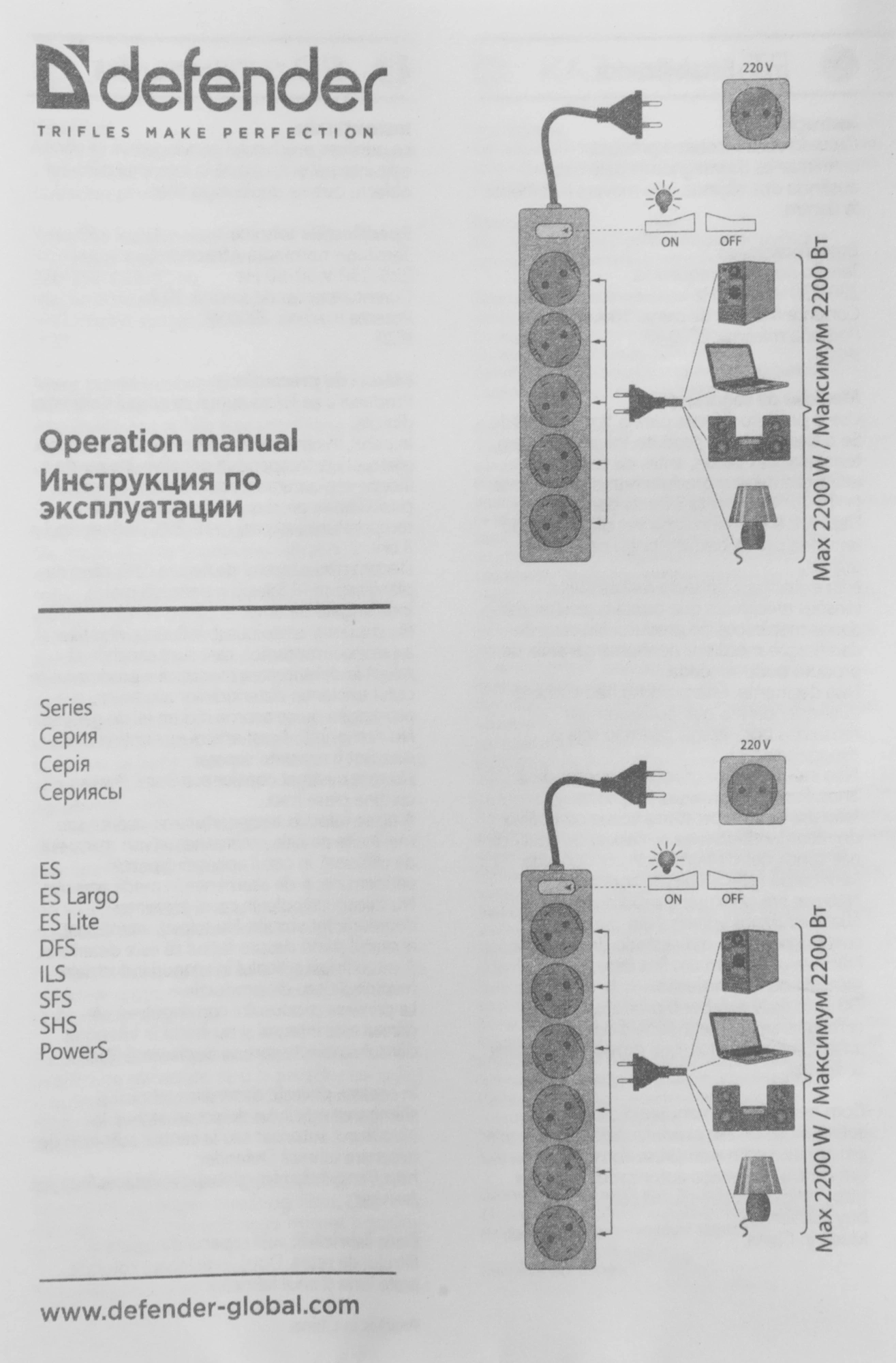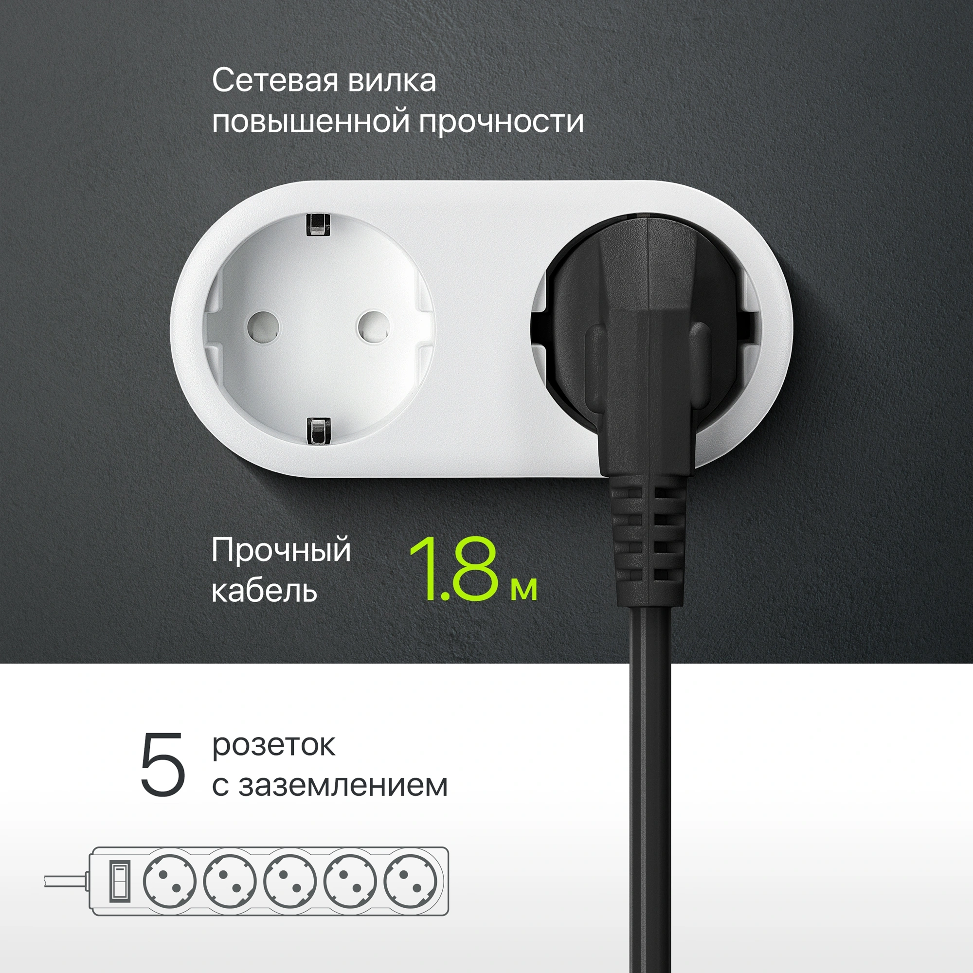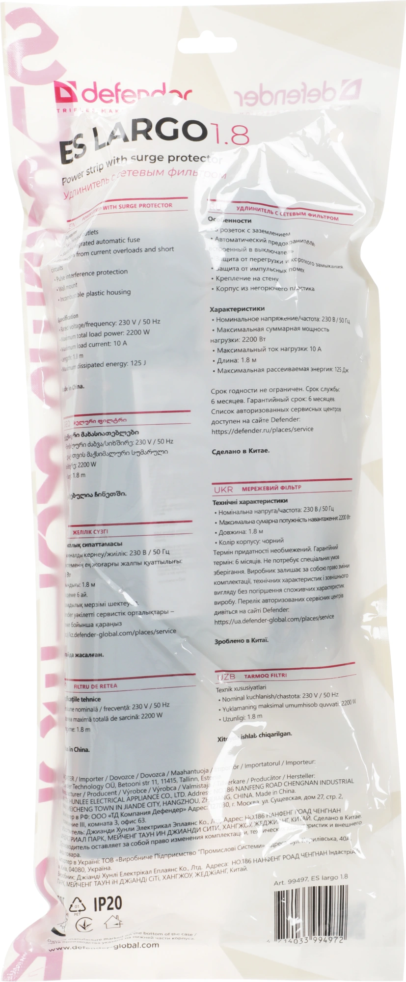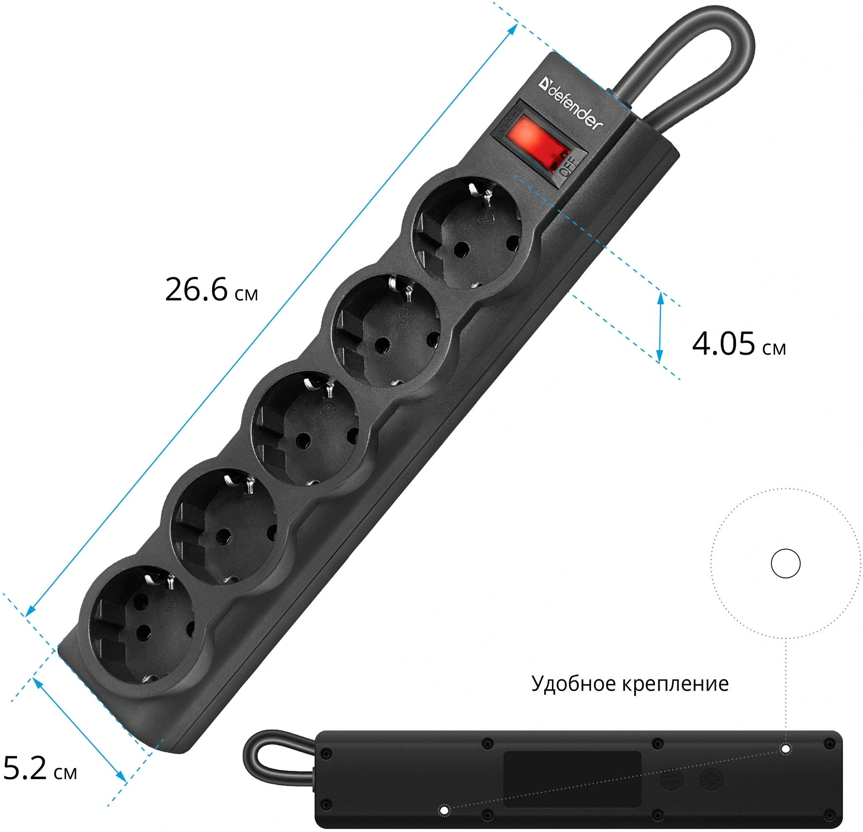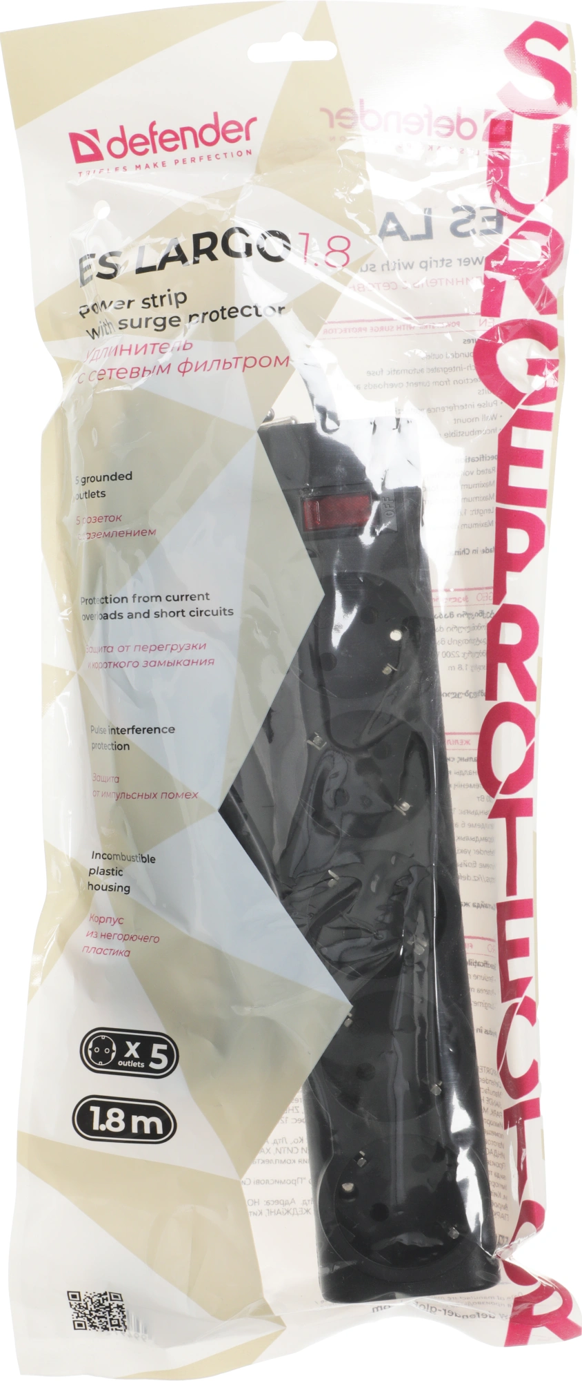 Сетевой фильтр Defender ES largo 1.8м (5 розеток) черный (коробка)