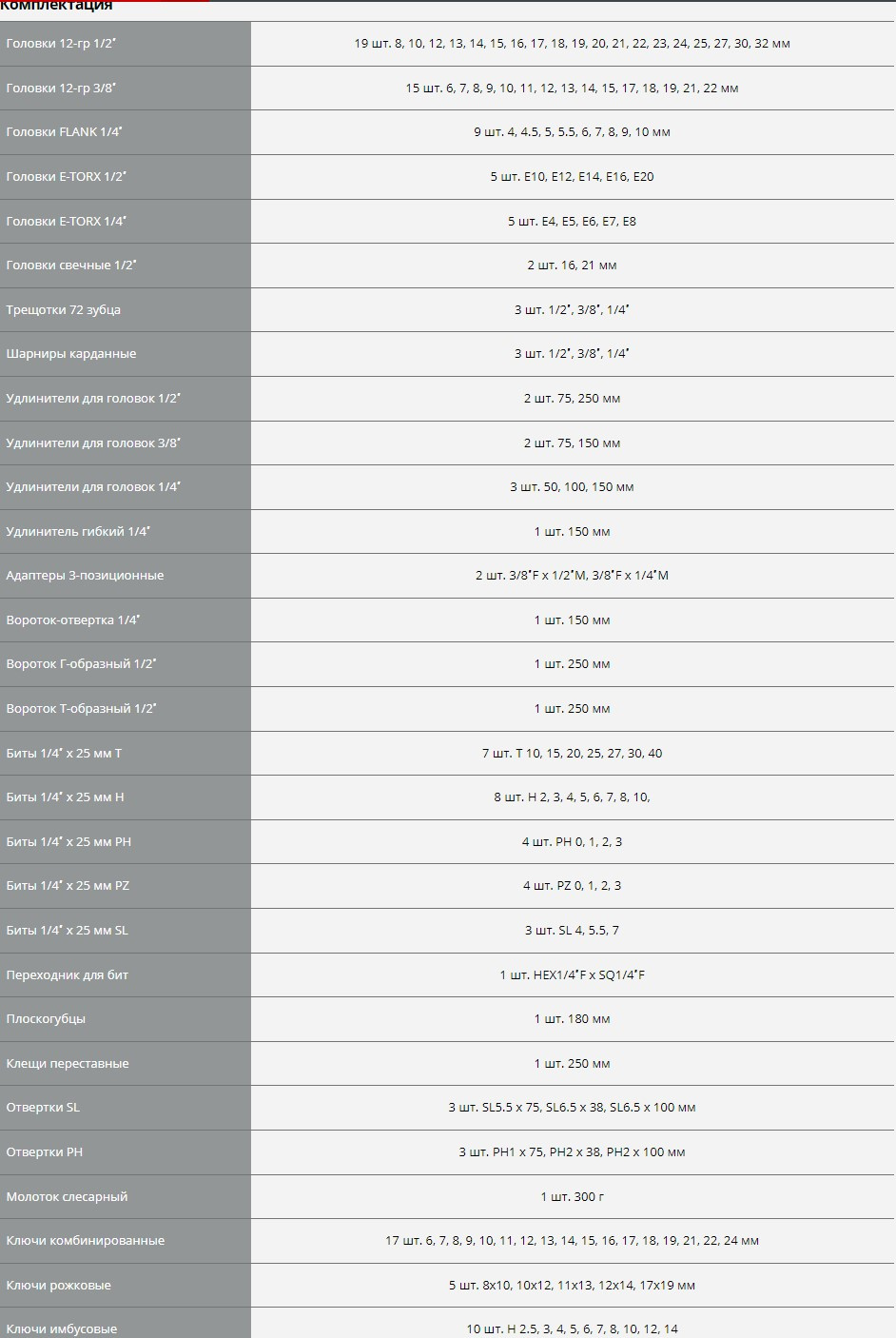 - Комплектация головокTorx (Е-профиль), двеннадцатигранные, шестигранные