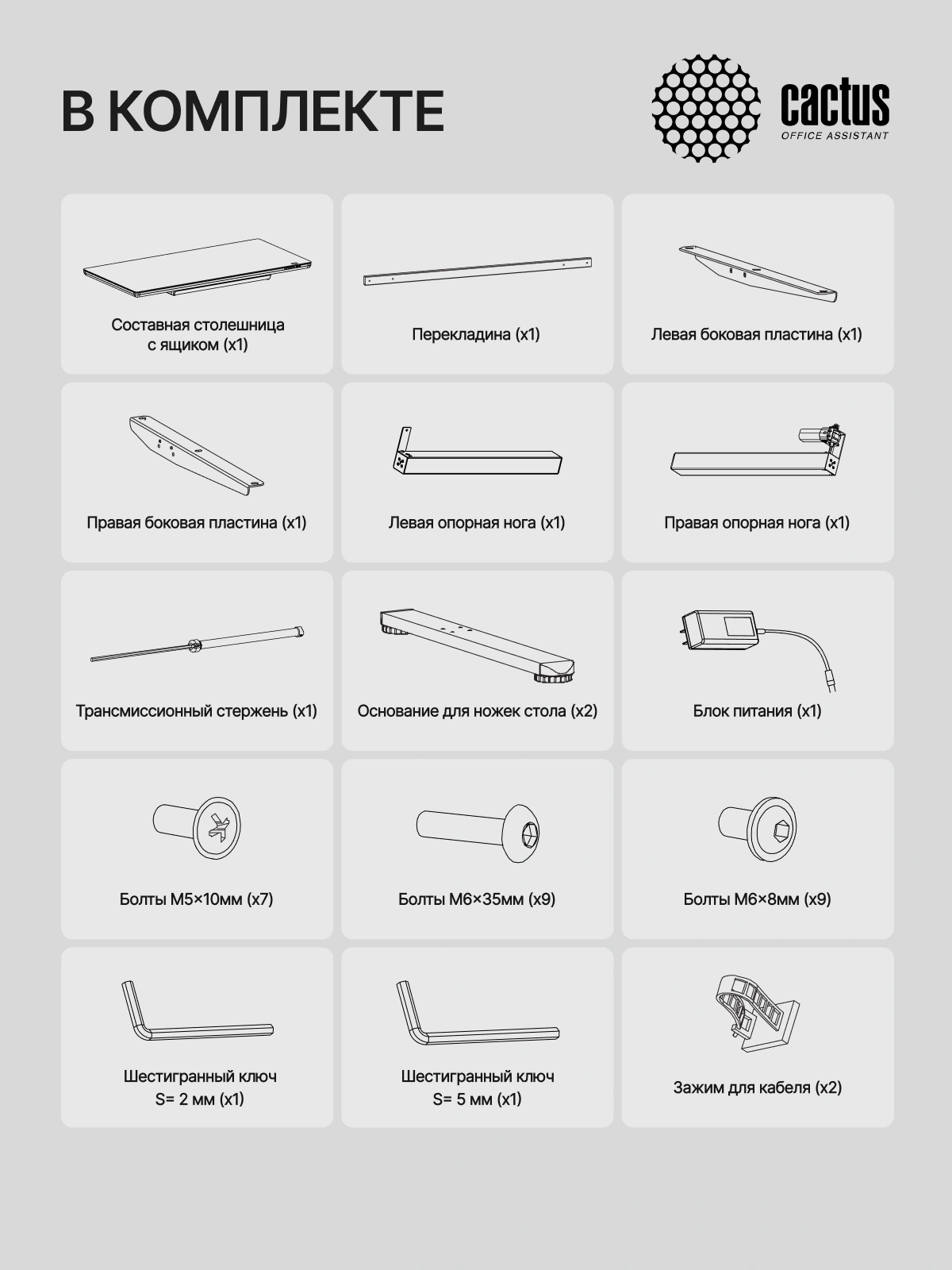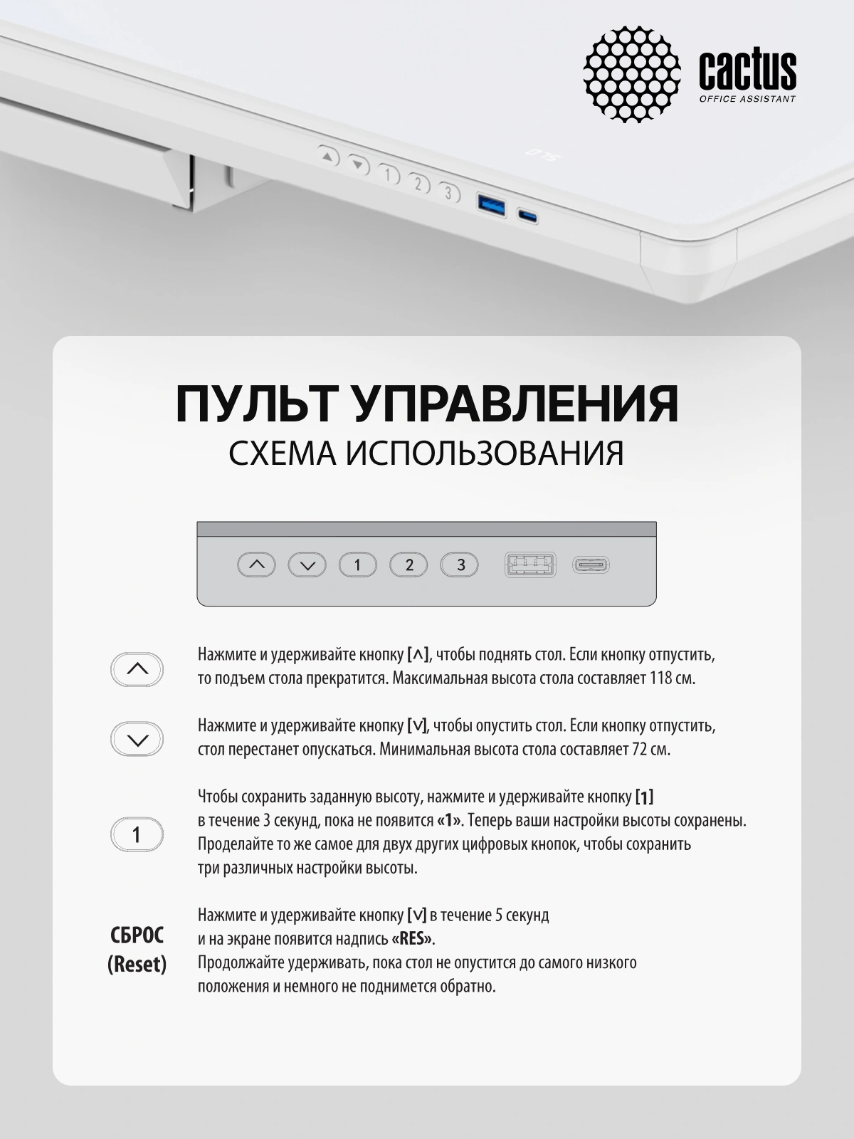 Стол для компьютера Cactus CS-EGD-WWT электропривод столешница стекло белый каркас белый
