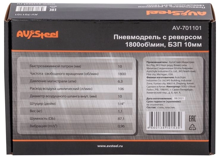 - ОсобенностиПневмодрель AV Steel AV-701101 предназначена для сверления отверстий в различных материалах. Имеет реверс, что позволяет извлекать заклинившее сверло, а так же работать со левосторонними сверлами. Рекомендуется использовать подключение шлангом со внутренним диаметром не менее 8 мм.