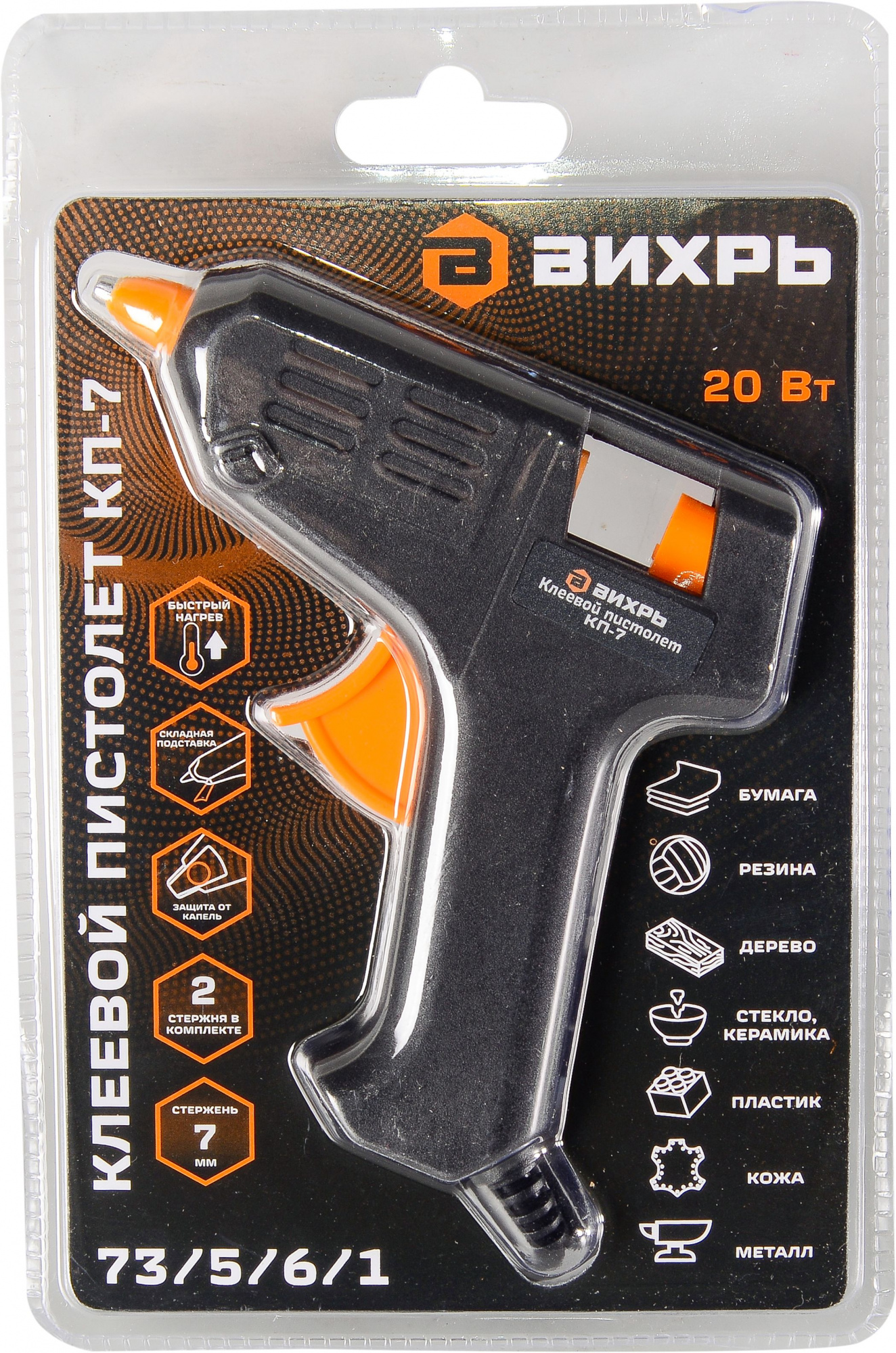 Клеевой пистолет Вихрь КП-7 20Вт 5гр/мин стерж.:7мм (73/5/6/1)