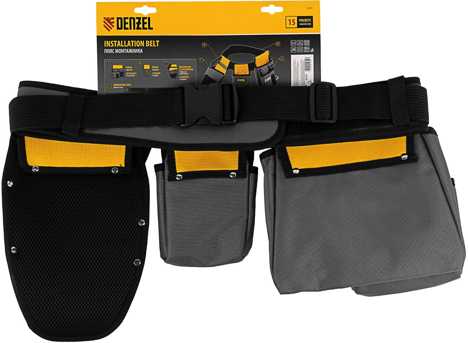 Пояс для инструментов Denzel 90291 4л 14карм. серый/желтый