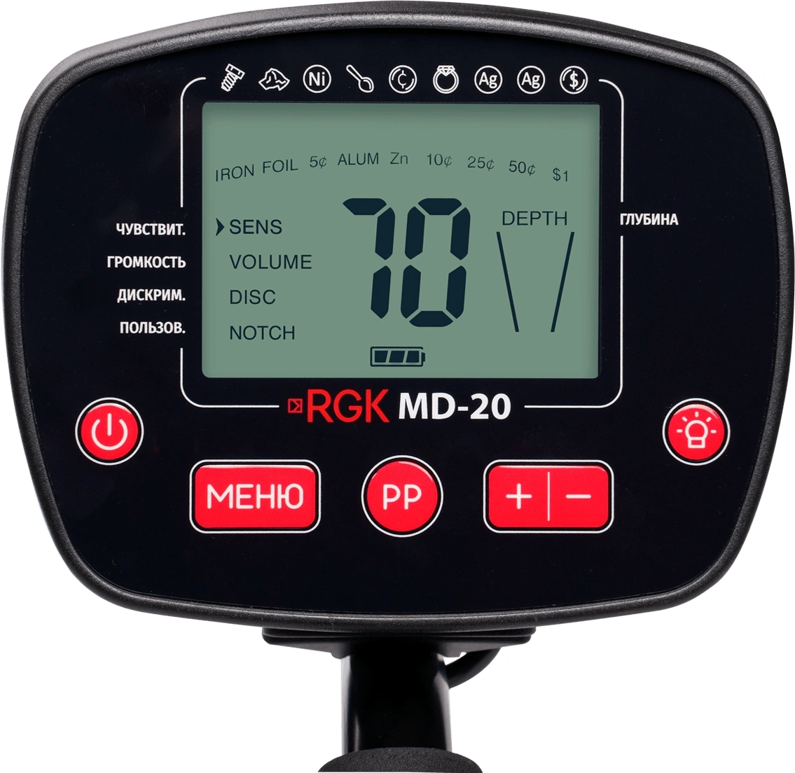 Универсальный прибор для поиска черных и цветных металлов, монет, реликвий, исторических артефактов. Эта модель комплектуется моно-катушкой диаметром 26 см., которая отличается больше, чем у датчиков формата DD, глубиной обнаружения.
