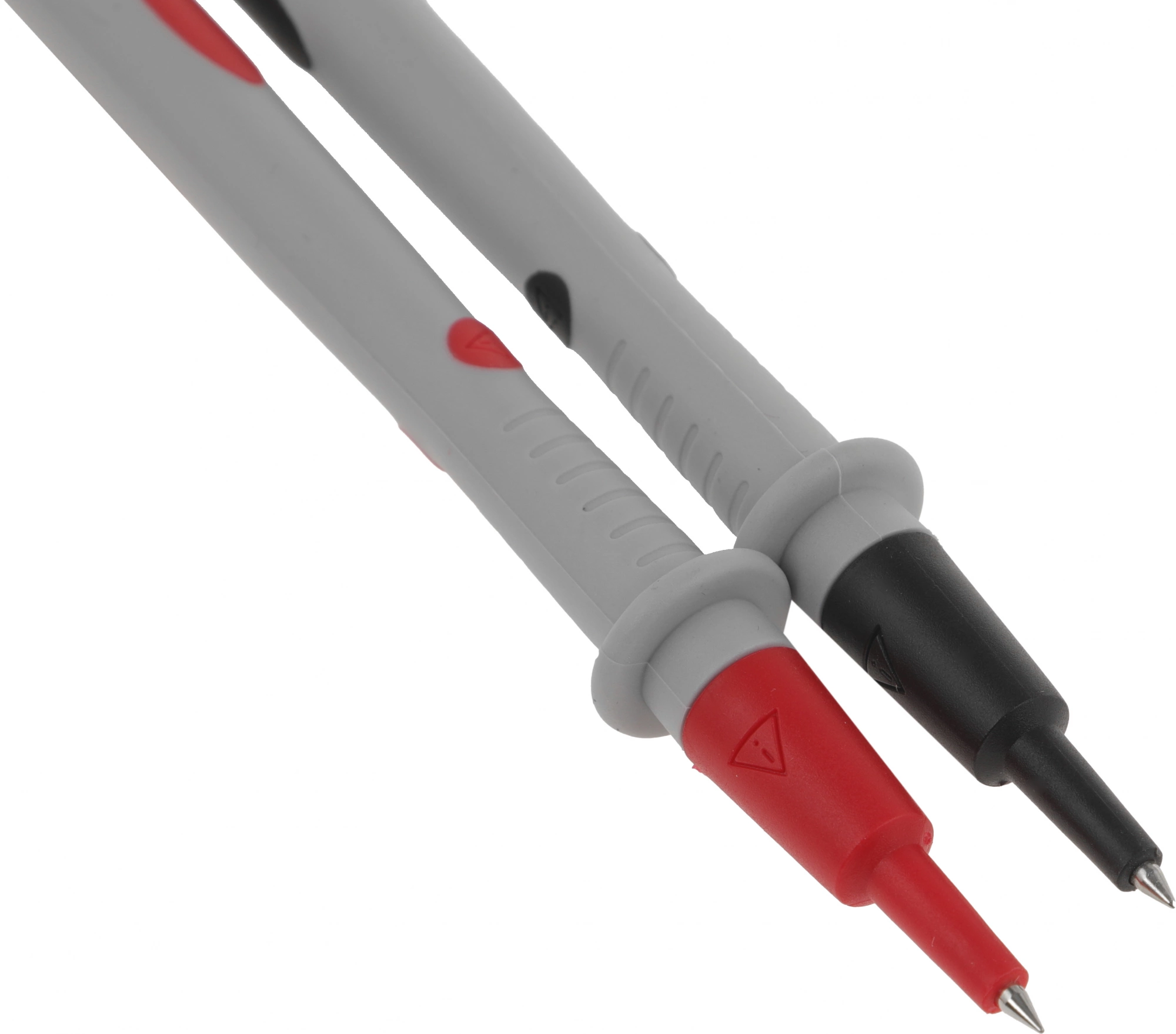Комплект измерительных проводов RGK TP2-03 включает в себя пару гибких проводников черного и красного цвета в силиконовой изоляции. Оба кабеля оснащены несъемными щупами длиной 133 мм., на конце каждого из которых установлен 18-миллиметровый игольчатый наконечник.