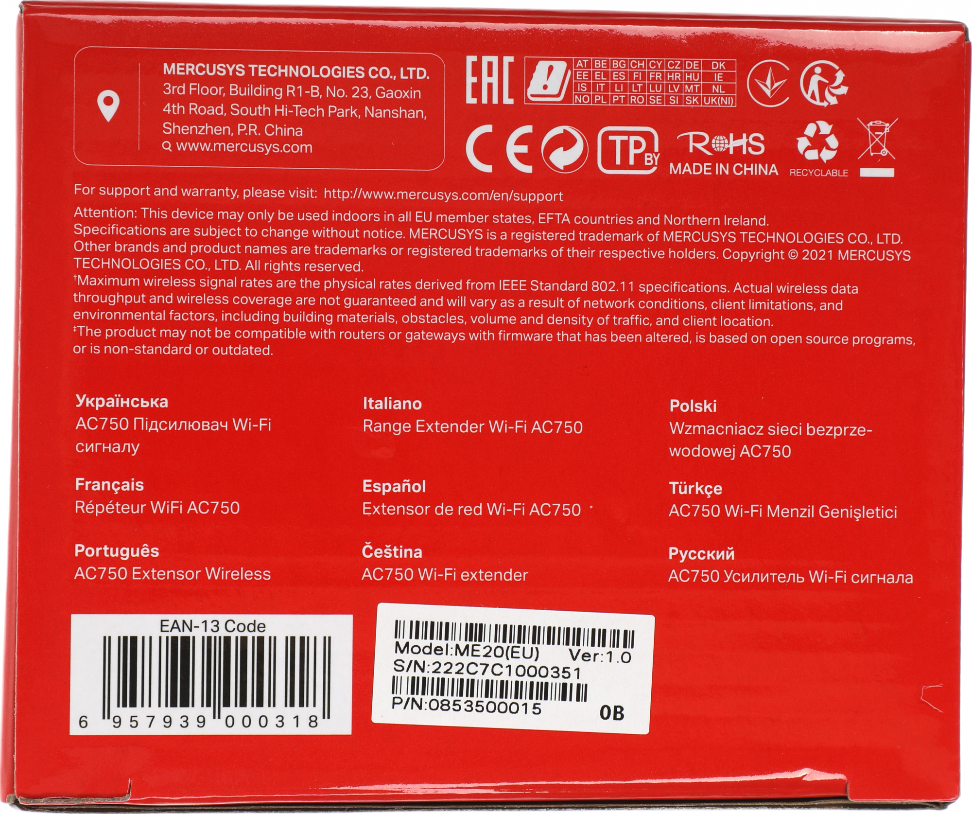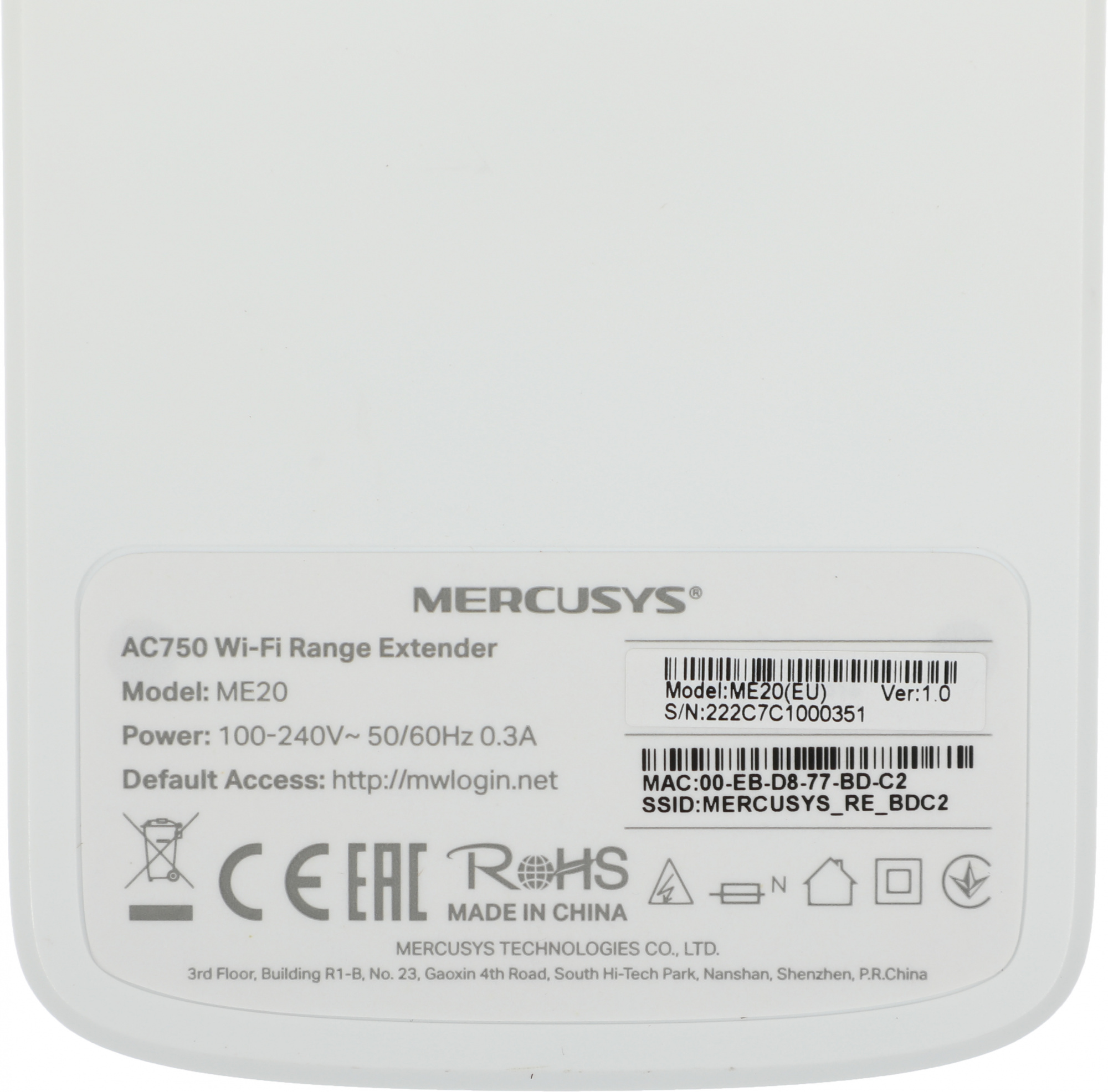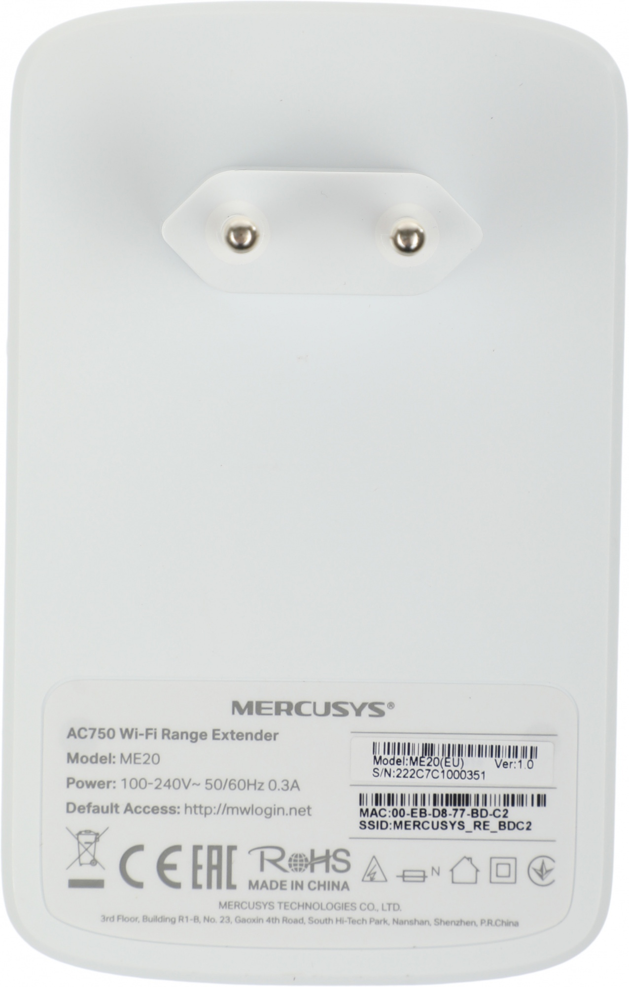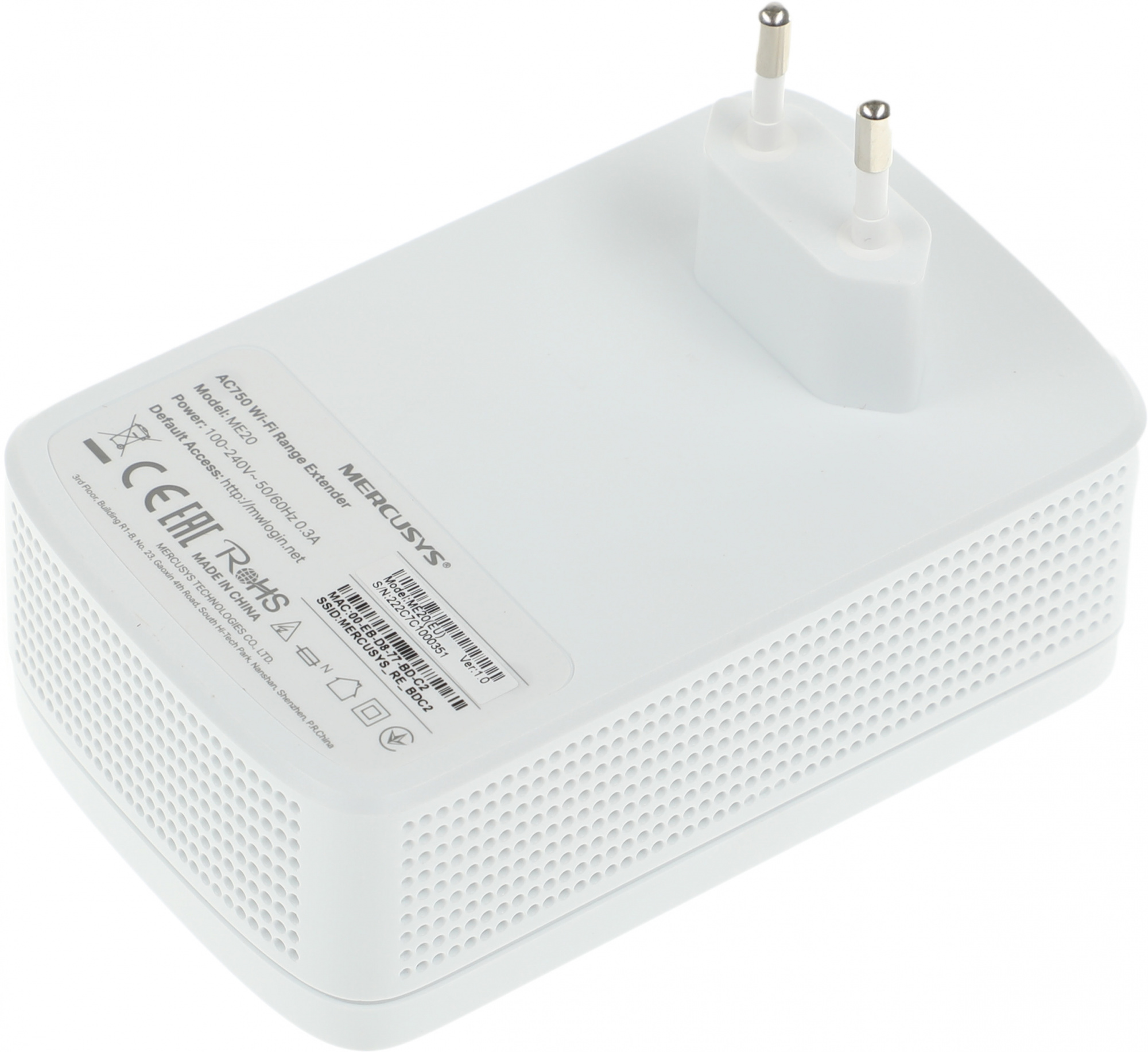 Повторитель беспроводного сигнала Mercusys ME20 AC750 10/100BASE-TX белый