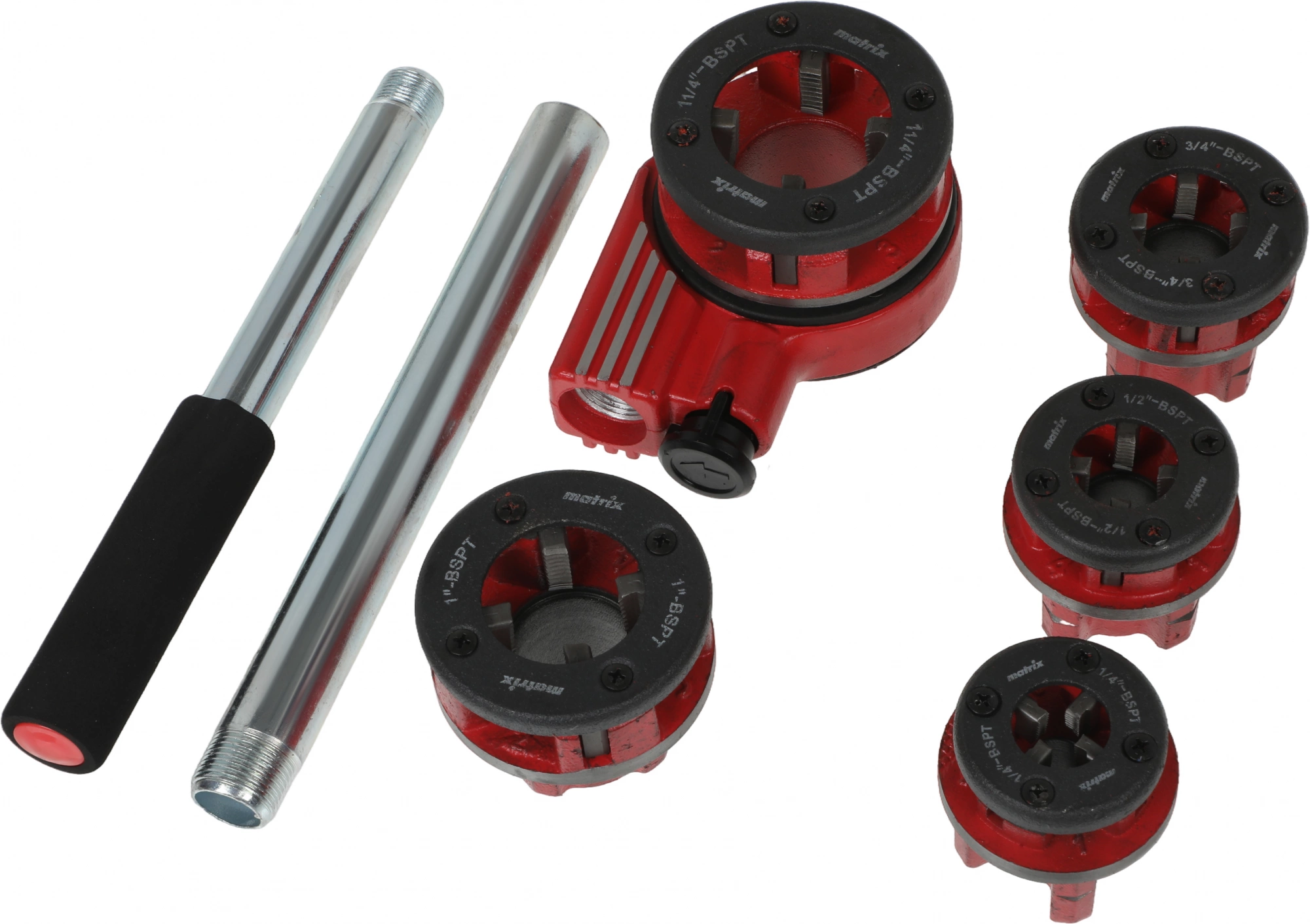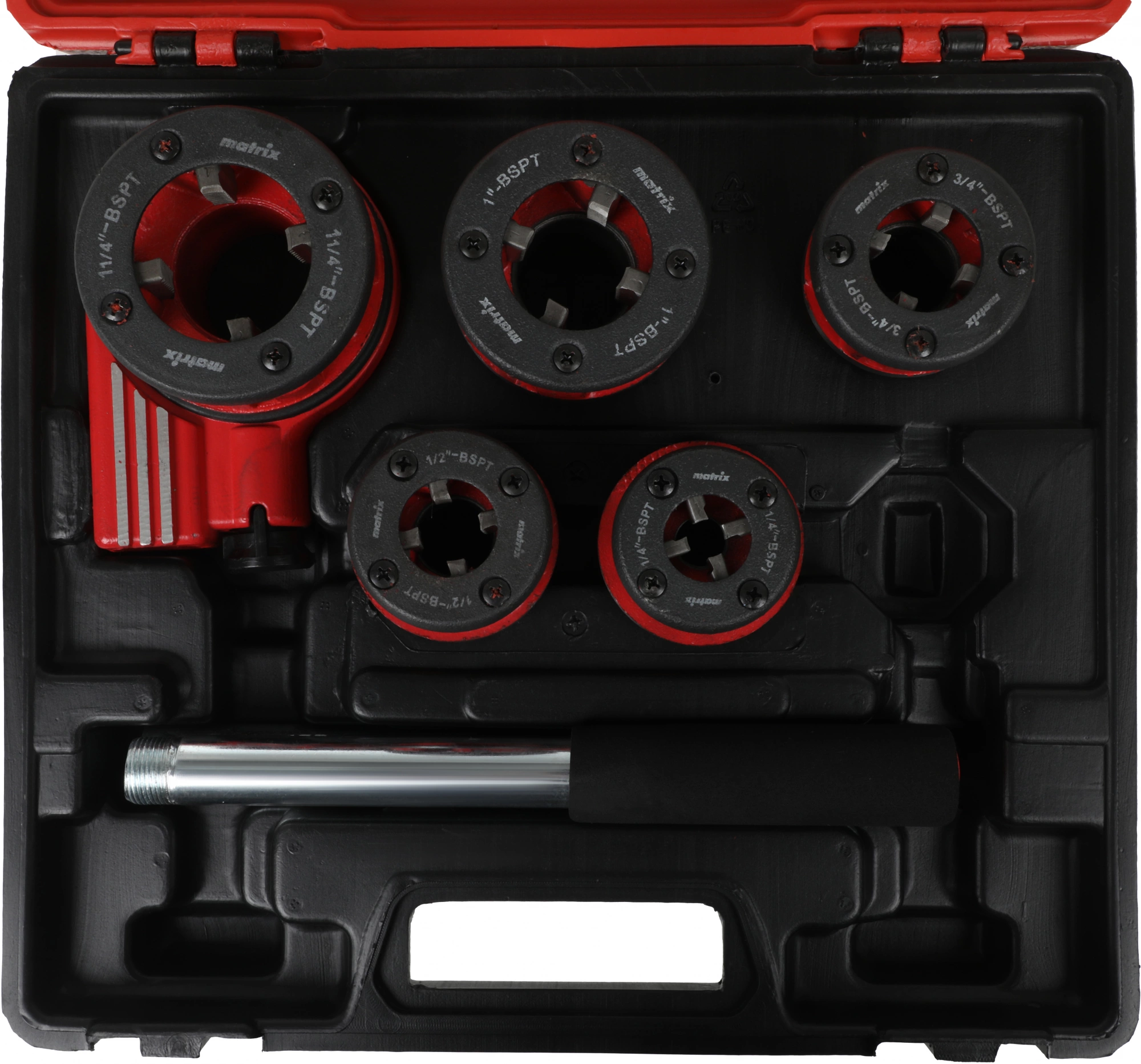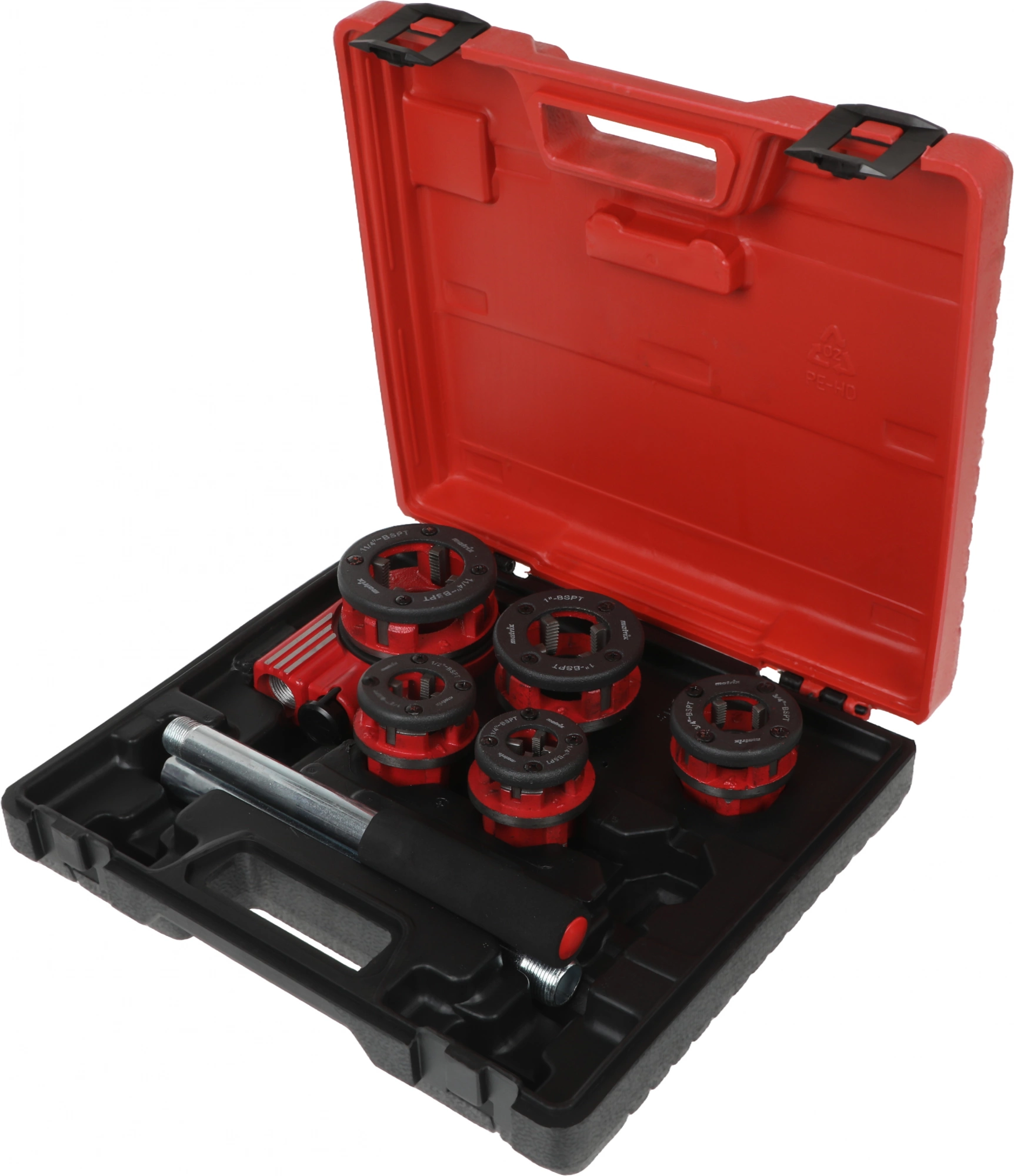 - Другие инструменты/принадлежностиТрубные клуппы 1/2", 1/4", 3/4", 1", 1 1/4"; Плашкодержатель с трещоткой; Сборная рукоятка.