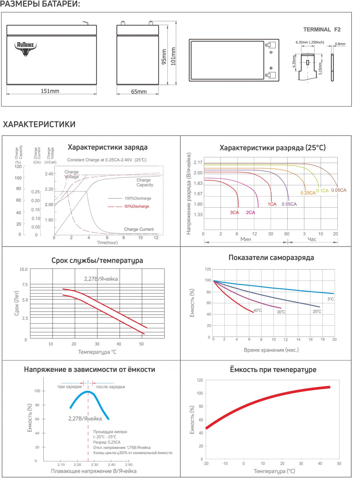 Аккумуляторная батарея Rutrike 6-F-7 выполнена по технологии AGM и состоит из утолщённых свинцовых пластин и плотного слоя сепаратора между ними. Батарея не требуют обслуживания на протяжении всего цикла эксплуатации. Отлично подходит для работы в системах безопасности и сигнализации, системах беспе