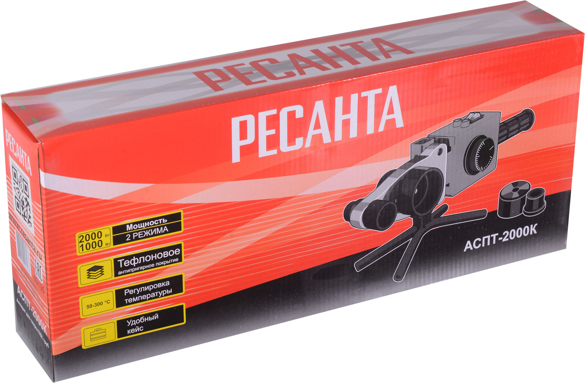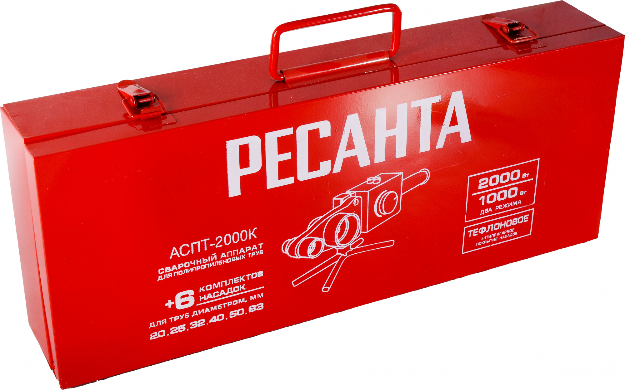 Сварочный аппарат для пластиковых труб Ресанта АСПТ-2000К 2кВт Тмакс.:300 парн.насад. 6насад. (кейс в компл.) (65/135)