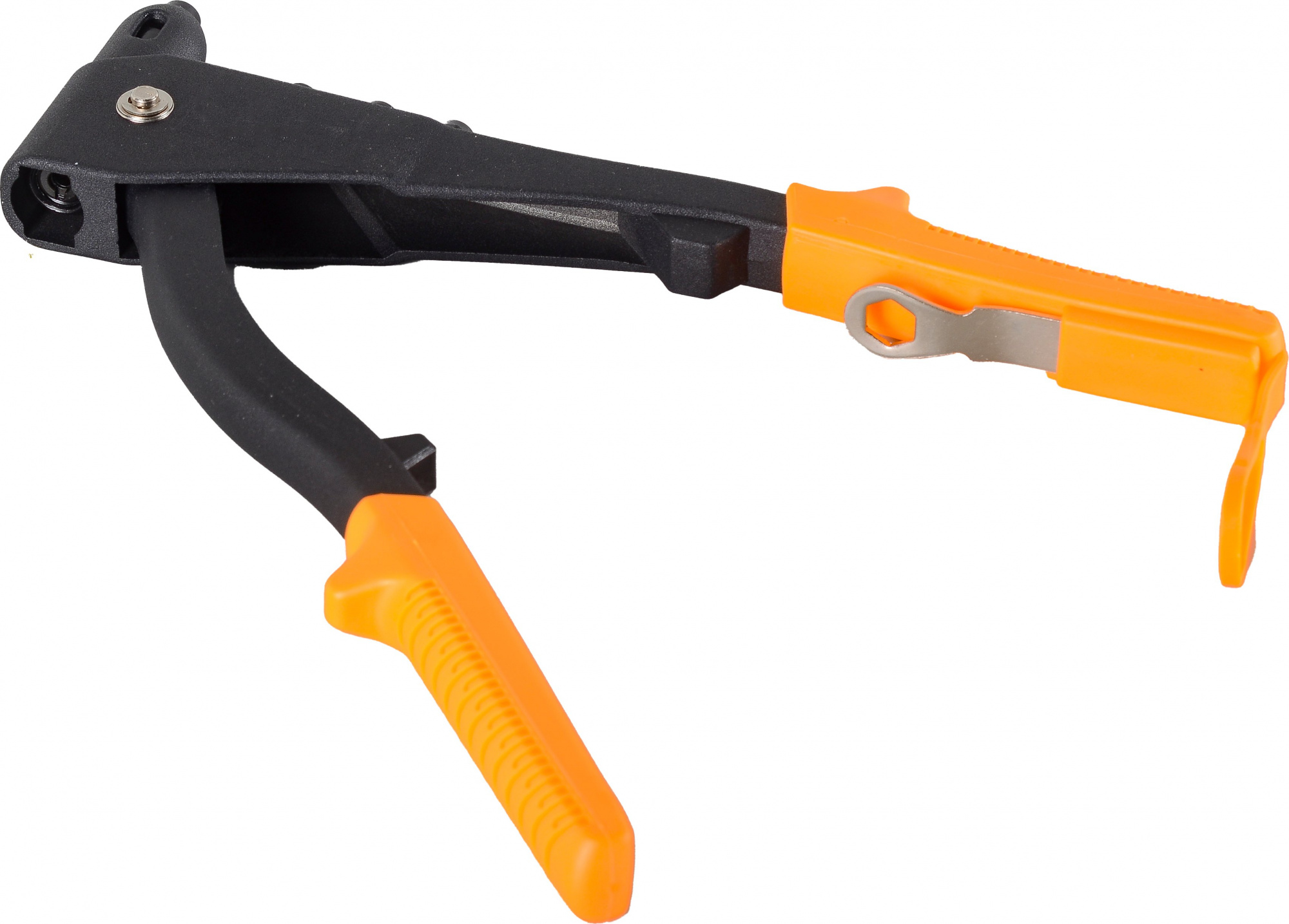 Типы заклепок: сталь/алюминий/нержавеющая сталь; Тип изделия: усиленный. В комплект входят 4 насадки под диаметры 2.4, 3.2, 4.0, 4.8 мм. и ключ для их замены. Насадки крепятся на инструмент, что создает дополнительное удобство в работе. Макс. скрепляемая толщина - 45 мм.