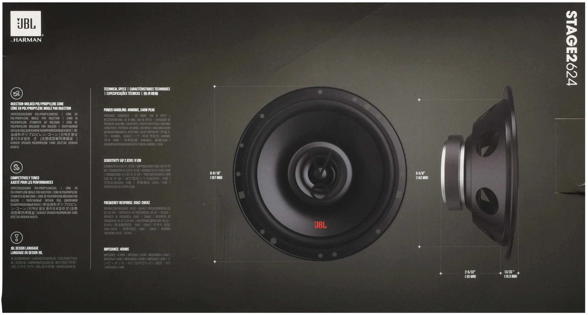 Колонки автомобильные JBL Stage2 624 (без решетки) 240Вт 91дБ 4Ом 16.5см (6 1/2дюйм) (ком.:2кол.) коаксиальные двухполосные