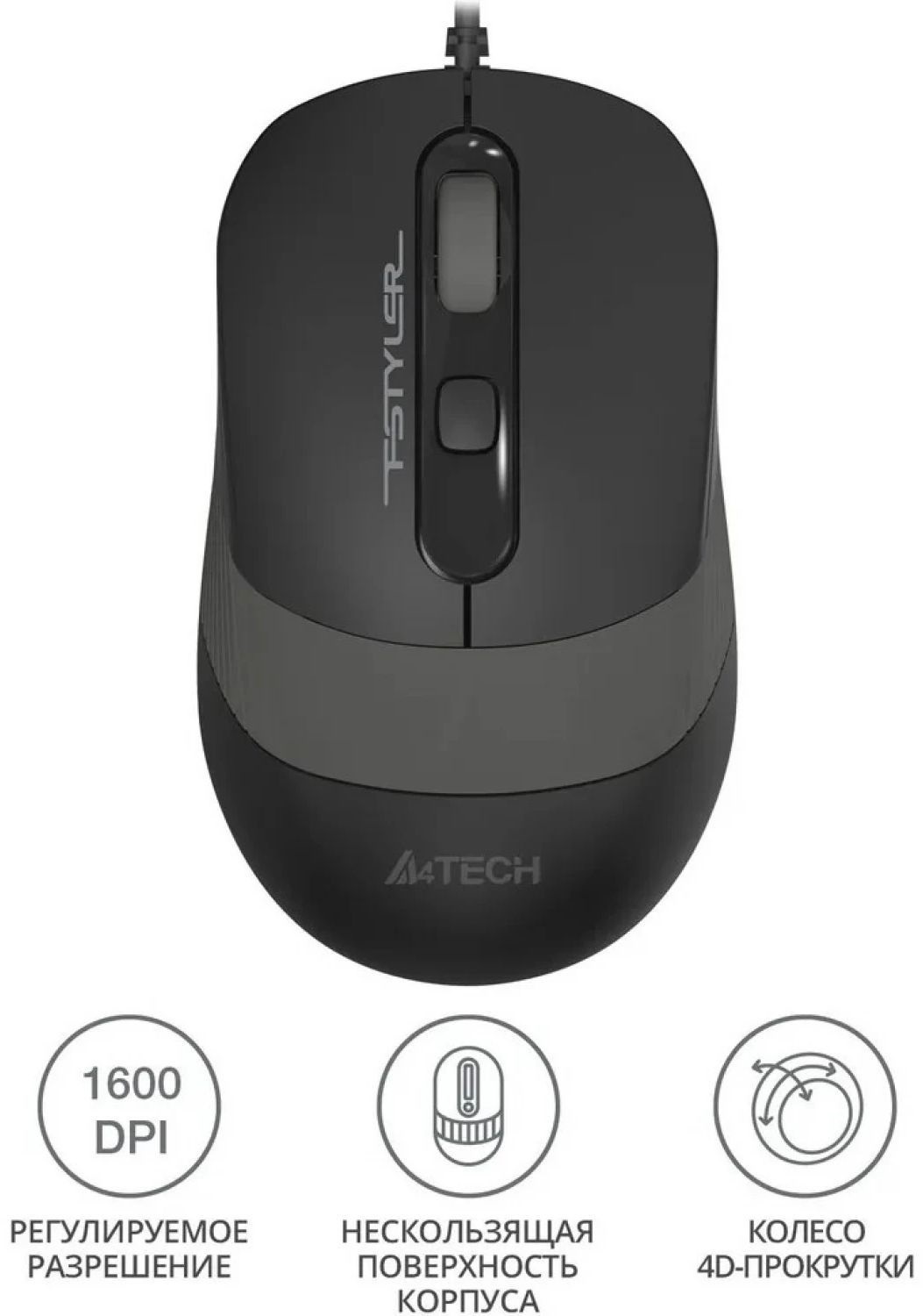 Мышь A4Tech Fstyler FM10S черный/серый оптическая 1600dpi silent USB 3but (FM10S USB GREY)