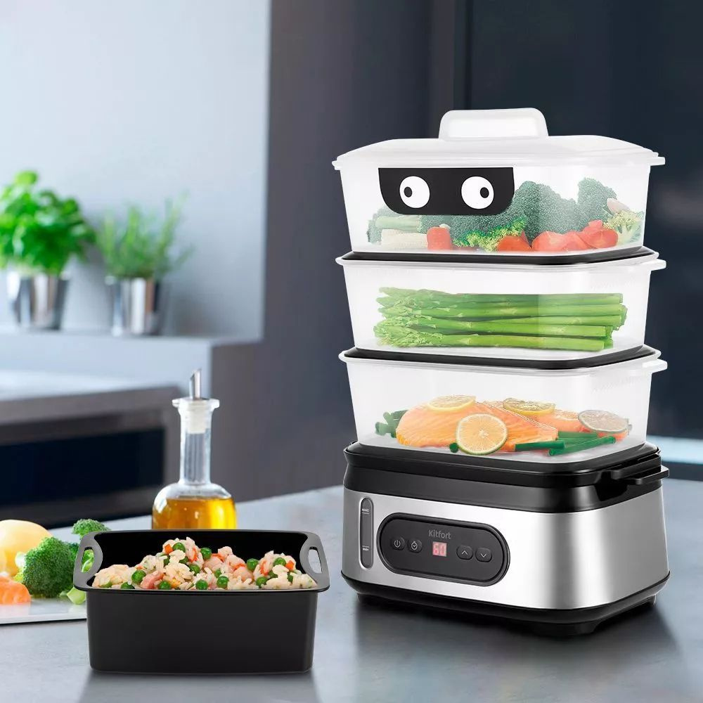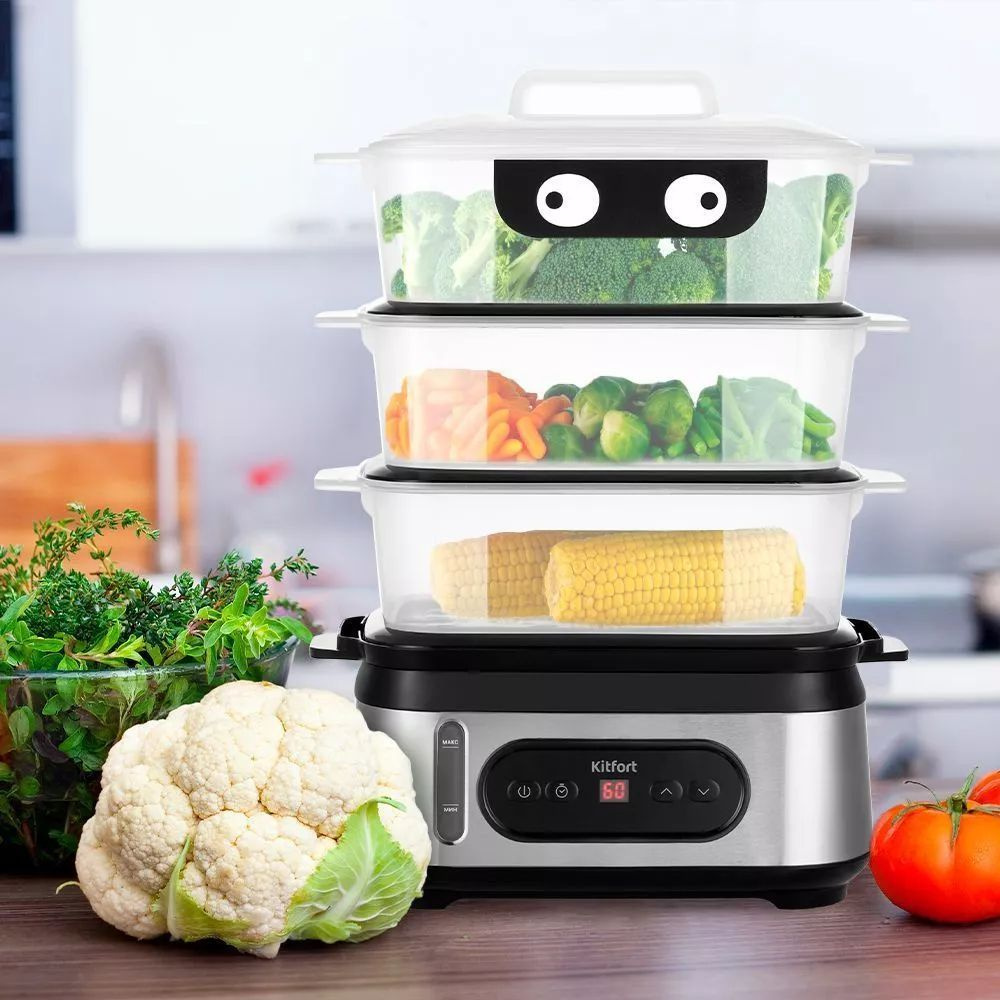 Пароварка Kitfort КТ-4082 3ярус. 800Вт серебристый