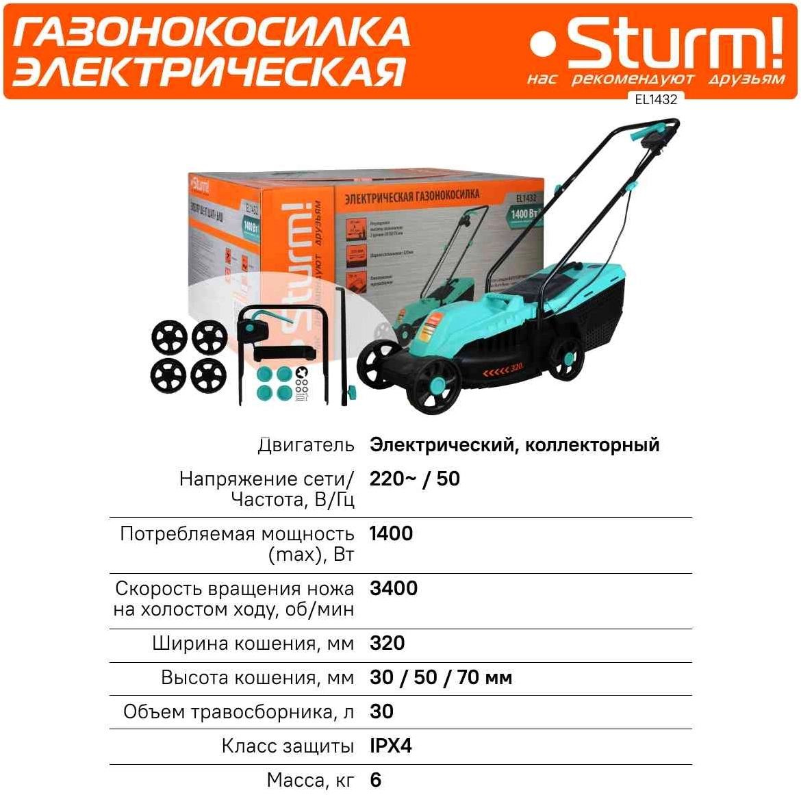 Газонокосилка роторная Sturm! EL1432 1400Вт