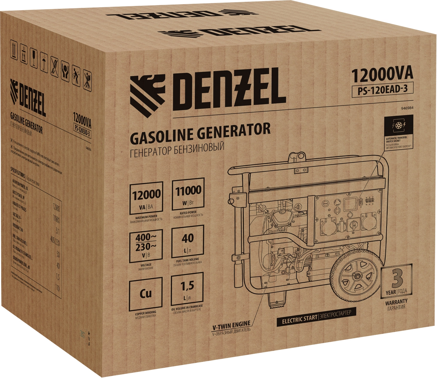 Генератор Denzel PS-120EAD-3 12кВт