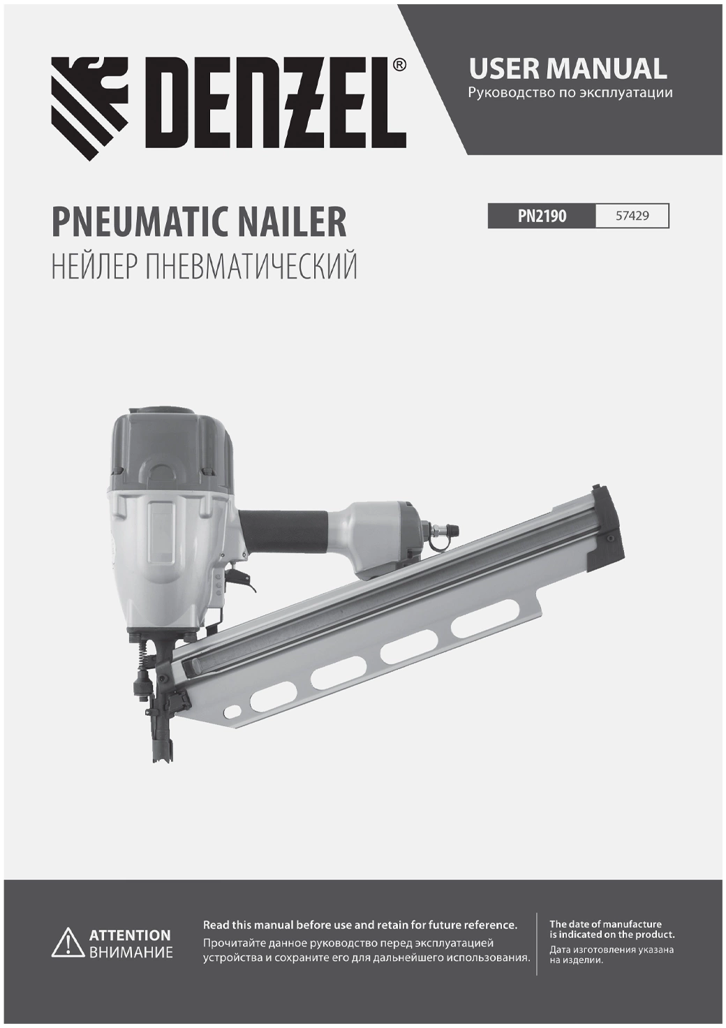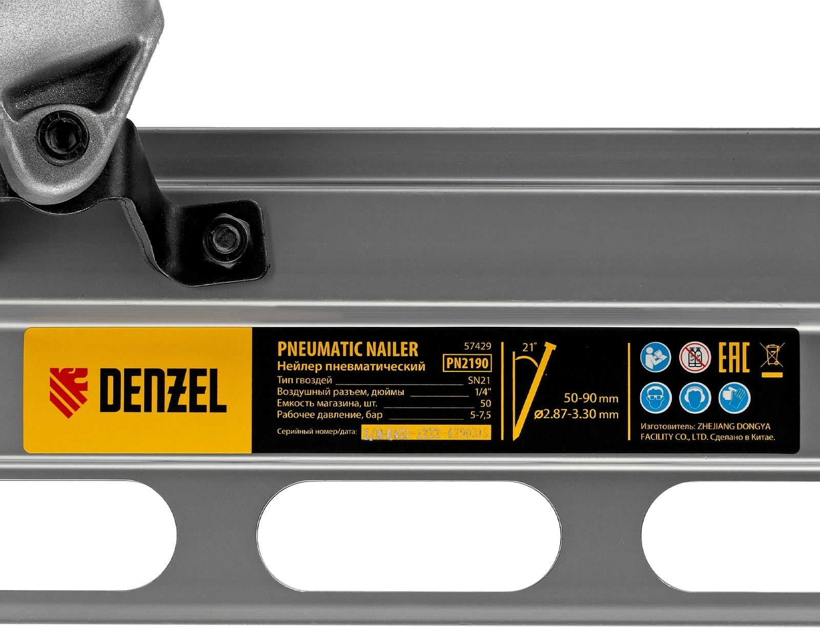 Пистолет гвоздезабивной Denzel PN2190 серый/желтый