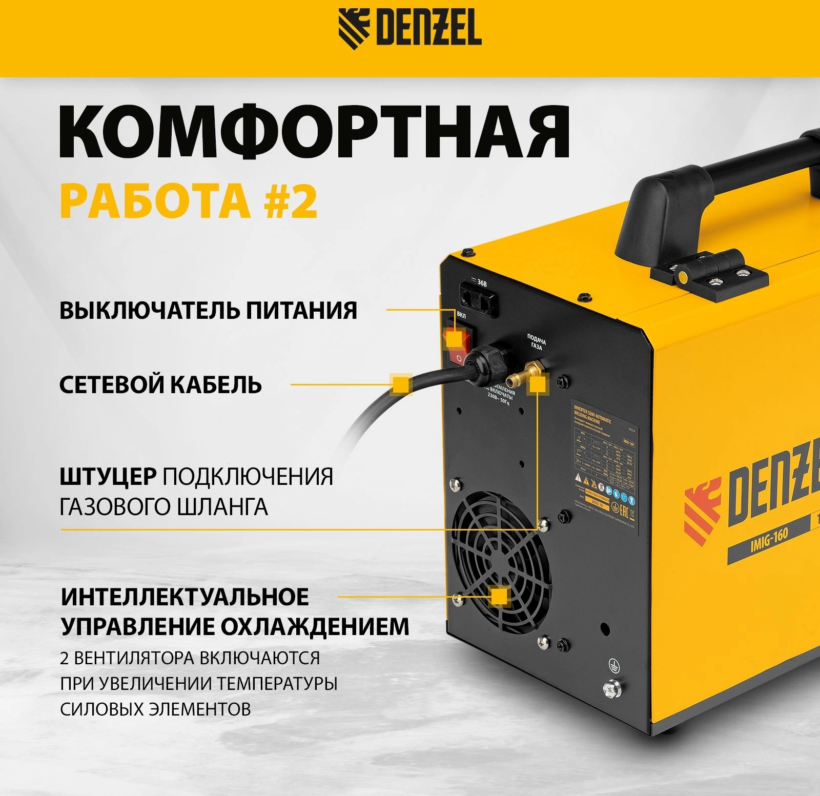 Сварочный полуавтомат Denzel IMIG-160 Synergy инвертор ММА/TIG MIG/MAG 4.5кВт