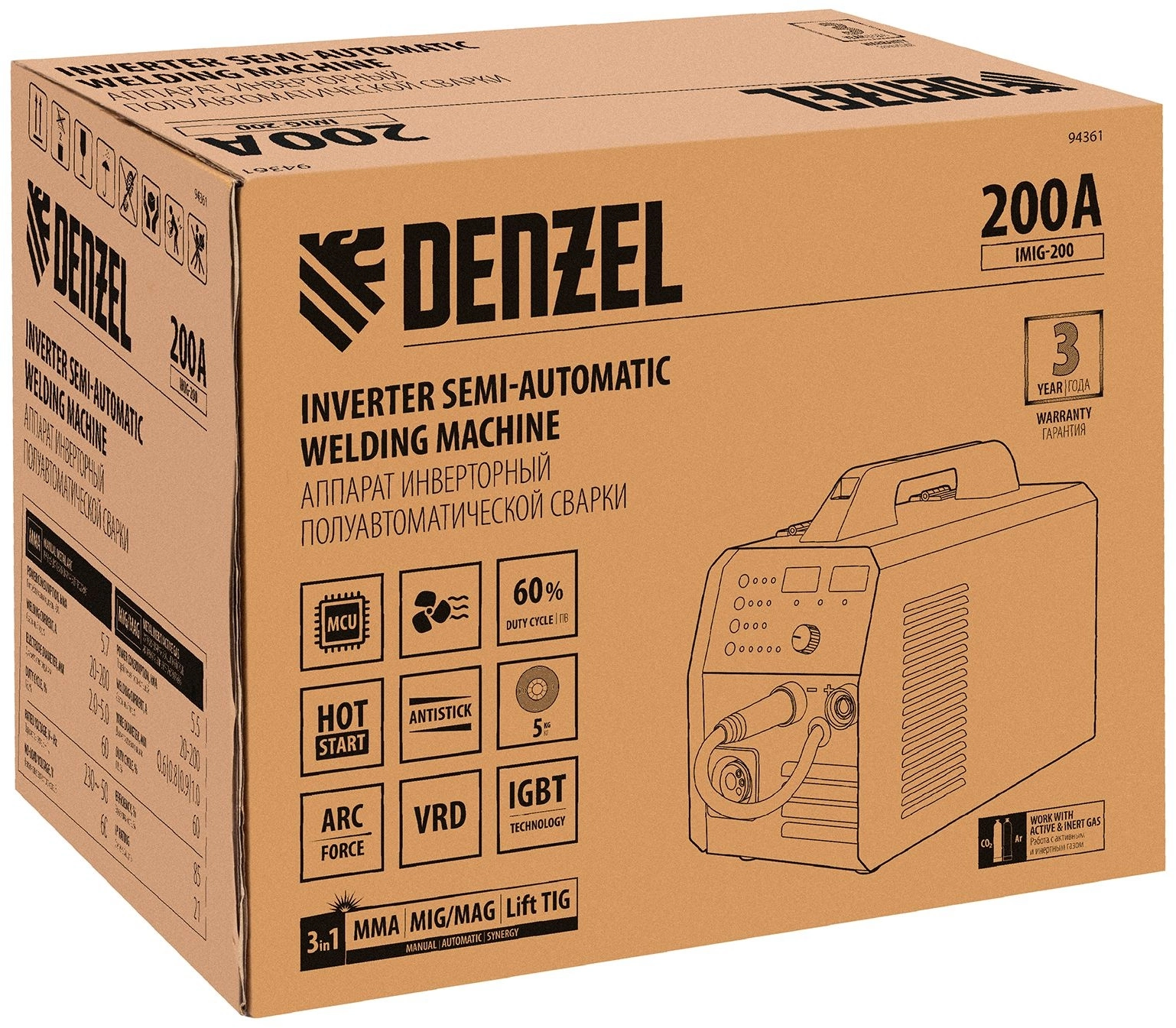 Сварочный полуавтомат Denzel IMIG-200 инвертор ММА/TIG MIG/MAG 5.7кВт