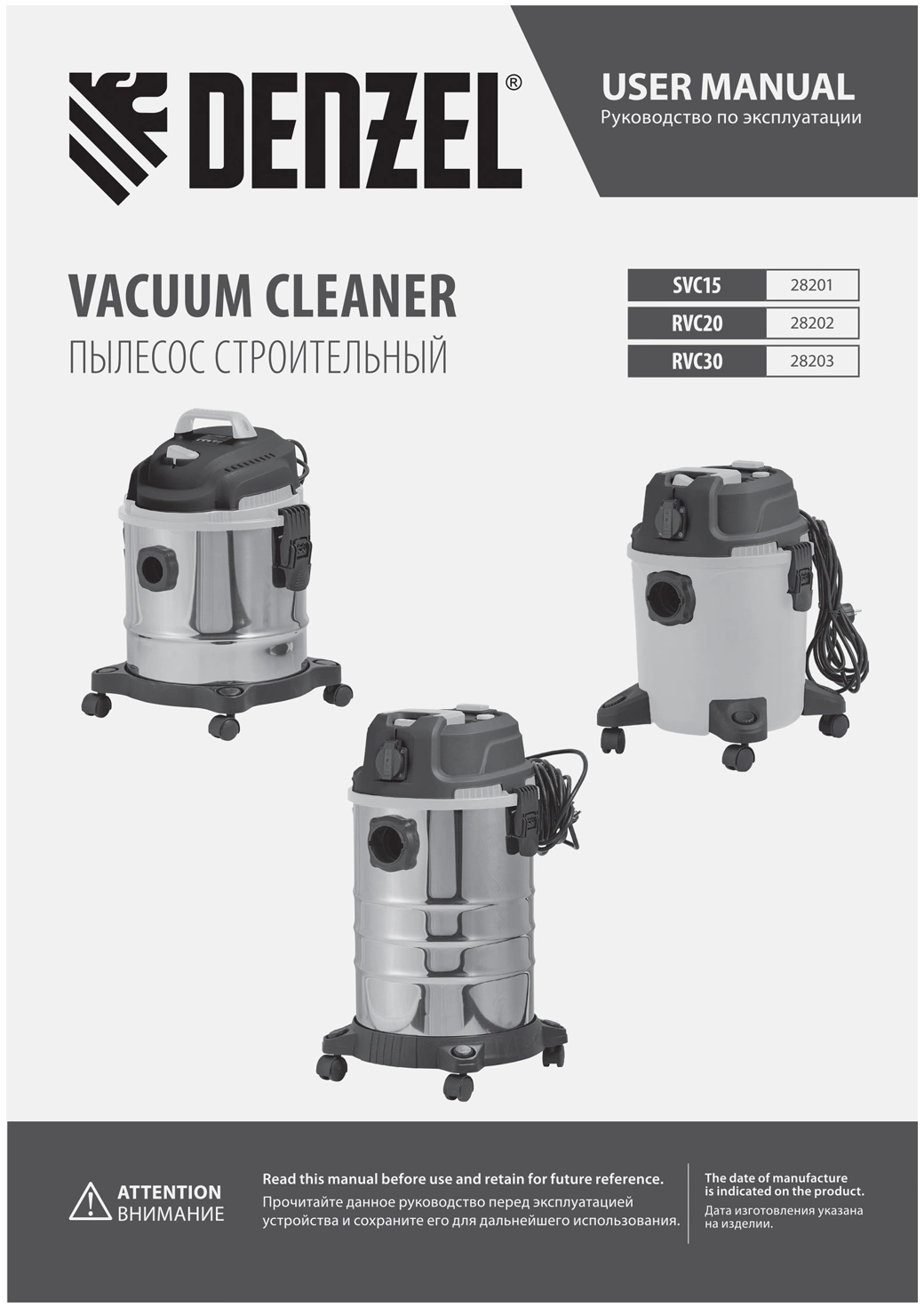 Строительный пылесос Denzel RVC20 1400Вт (уборка: сухая/сбор воды/выдув) желтый