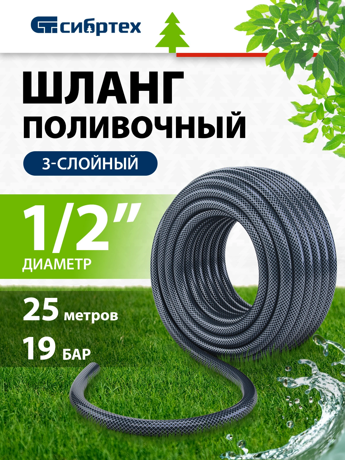 Шланг Сибртех 674362 1/2" 25м поливочный армированный синий