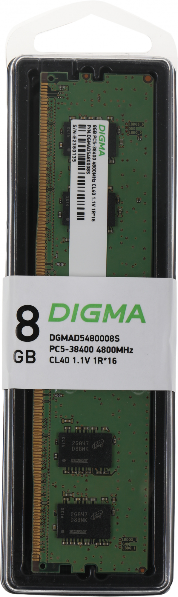 Память DDR5 8GB 4800MHz Digma DGMAD5480008S RTL PC5-38400 CL40 DIMM 288-pin 1.1В single rank Ret