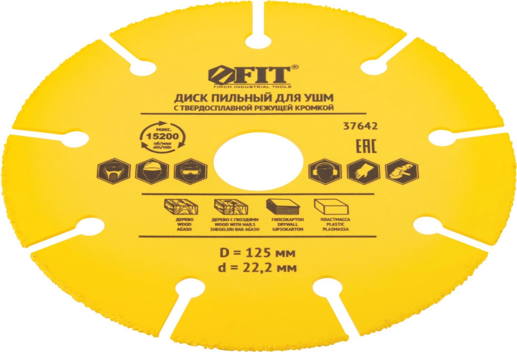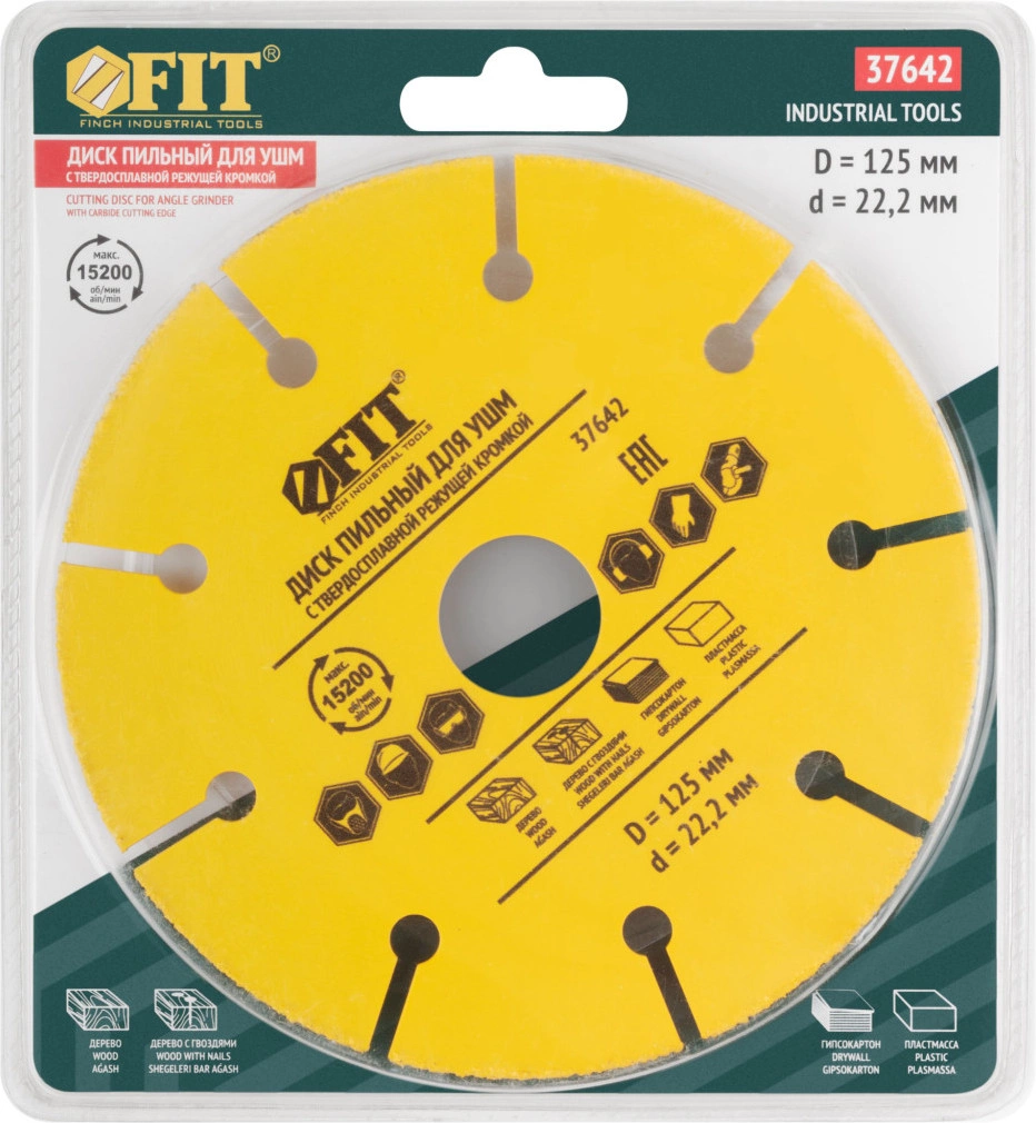 Диск пильный по дер. FIT 37642 d=125мм d(посад.)=22.2мм (угловые шлифмашины)