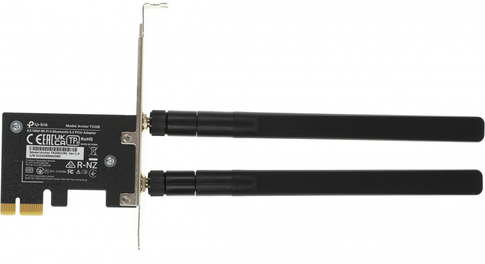 Сетевой адаптер Wi-Fi + Bluetooth TP-Link Archer TX20E AX1800 PCI Express (ант.внеш.съем) 2ант.