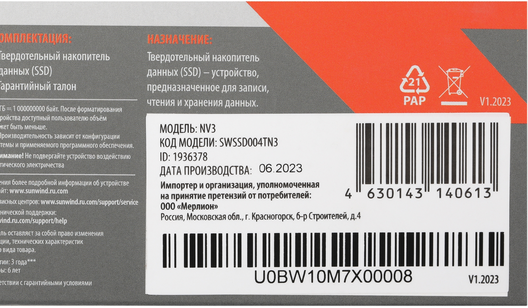 - PartNumber/Артикул ПроизводителяSWSSD004TN3