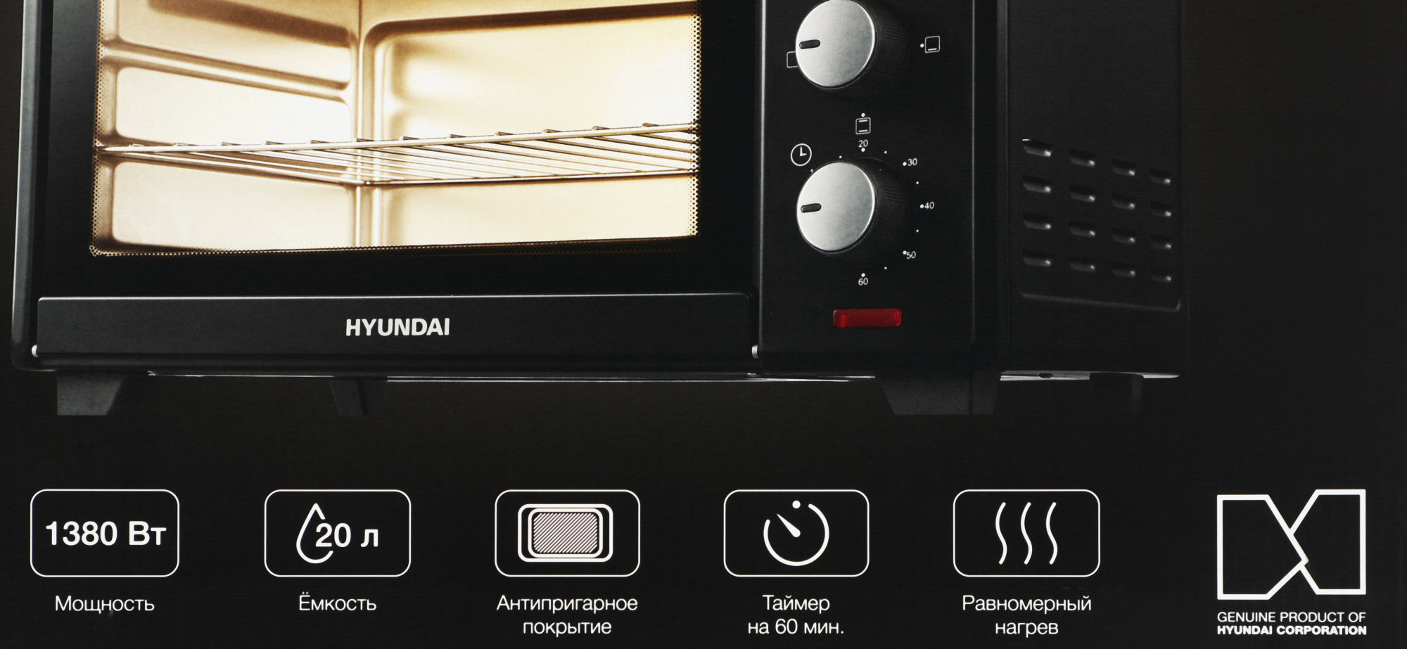 Мини-печь Hyundai MIO-HY090 20л. 1380Вт черный