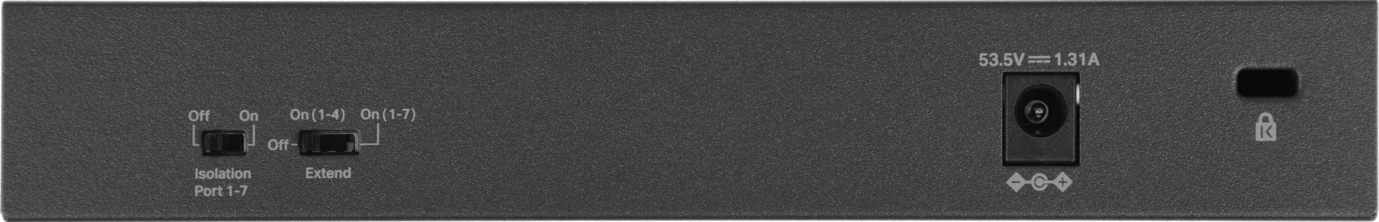 - ОсобенностиГигабитные порты: восемь портов RJ45 10/100/1000 Мбит/с. Семь портов PoE+: позволят подавать питание и передавать данные по одному кабелю. Бюджет PoE: бюджет на один порт составляет 30 Вт, а общий бюджет — 65 Вт. Режим увеличения дальности: позволит увеличить дальность передачи до 250 метров.