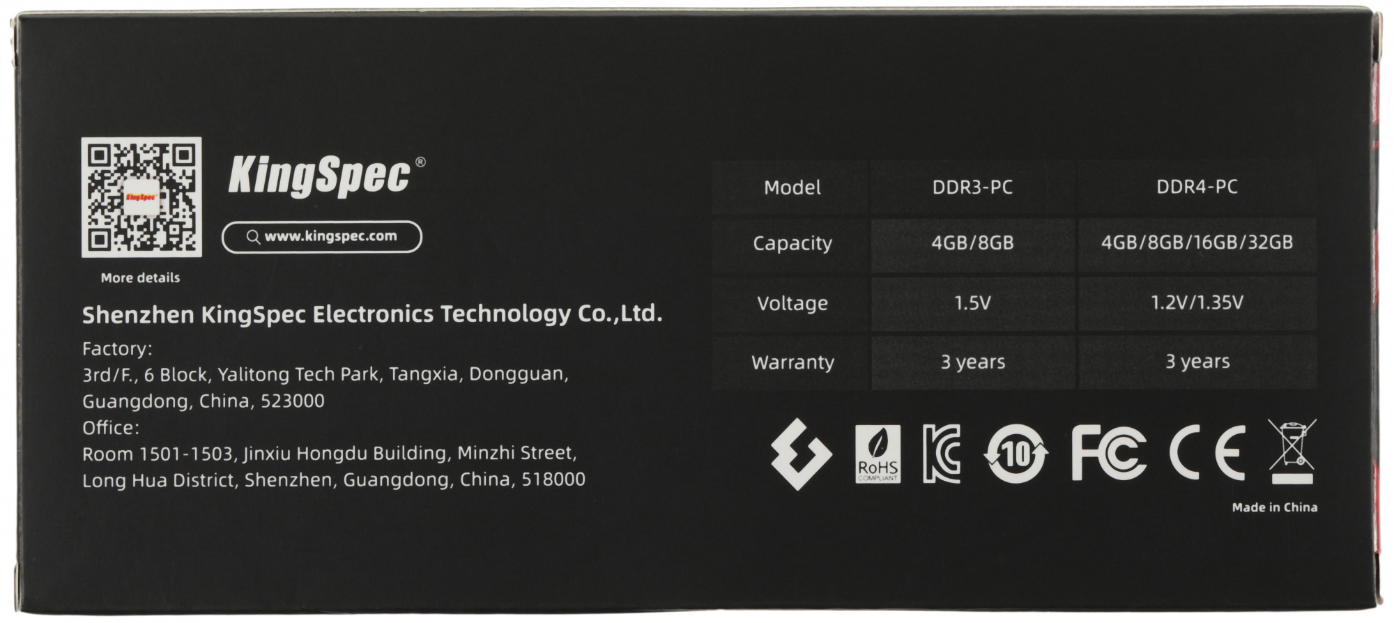 Память DDR3 4GB 1600MHz Kingspec KS1600D3P15004G RTL PC3-12800 CL11 DIMM 240-pin 1.5В dual rank Ret