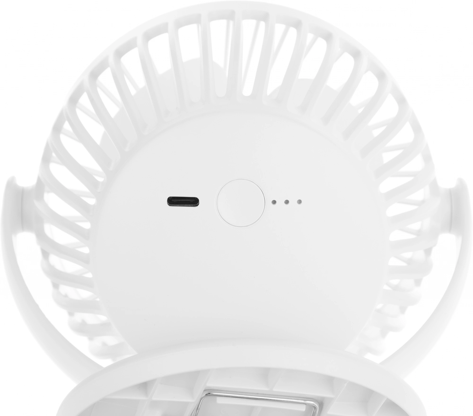 - ОсобенностиВращение корпуса 360. Три скорости, зарядка от USB. Основание вентилятора представляет собой крепкий зажим с противоскользящим покрытием. Встроенный аккумулятор емкостью 2000 мА поддерживает работу вентилятора в течение 2-6 часов. Встроенный порт USB Type-C. Погружать корпус в воду запрещено.
