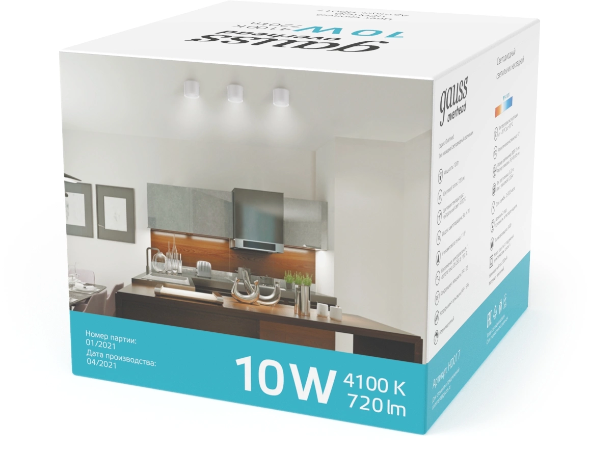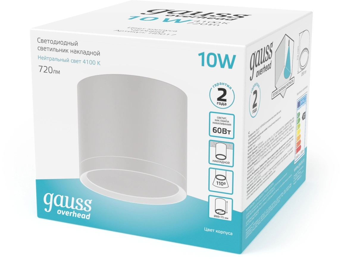 Светильник Gauss Overhead потолоч. 10Вт 4100K цв.св.:белый нейтральный белый (HD024)