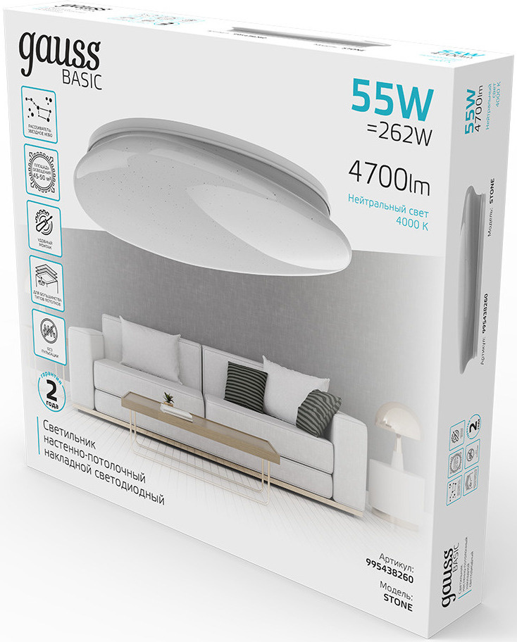 Светильник Gauss Basic Space Stone наст.-потол. 4000K цв.св.:белый белый (995438260)