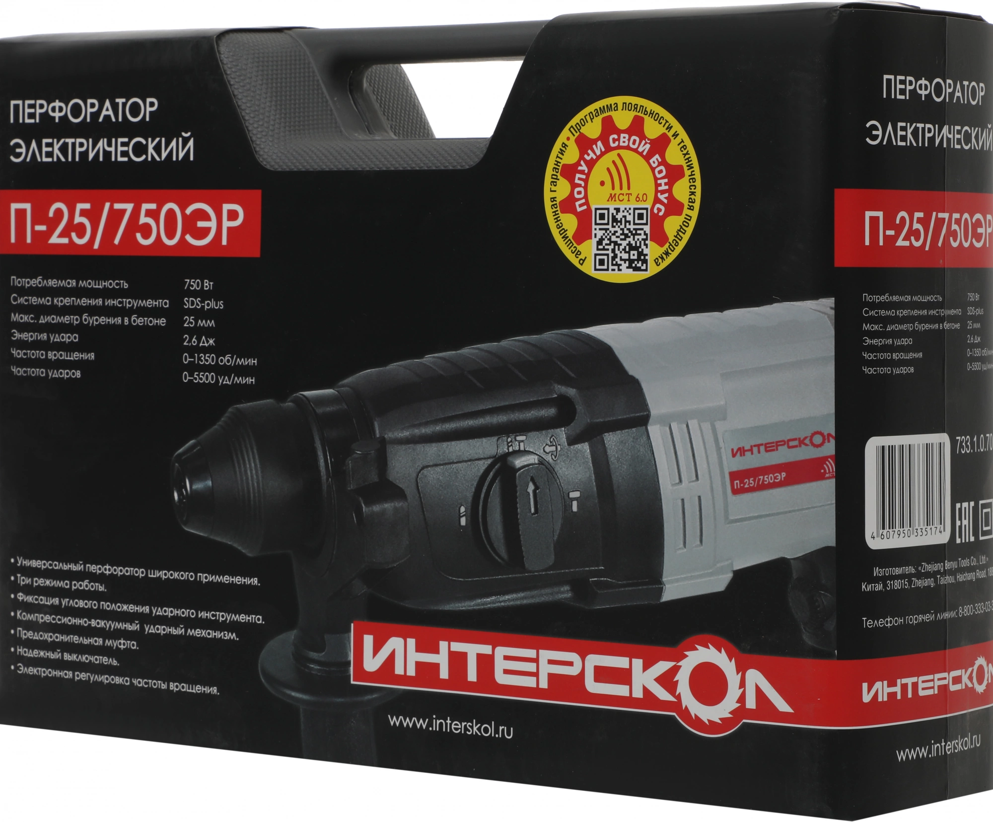 Перфоратор Интерскол П-25/750ЭР патрон:SDS-plus уд.:2.6Дж 750Вт (кейс в комплекте)