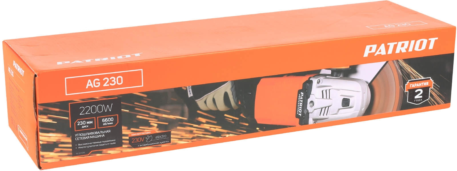 Углошлифовальная машина Patriot AG 230 2200Вт 6600об/мин рез.шпин.:M14 d=230мм (110301245)