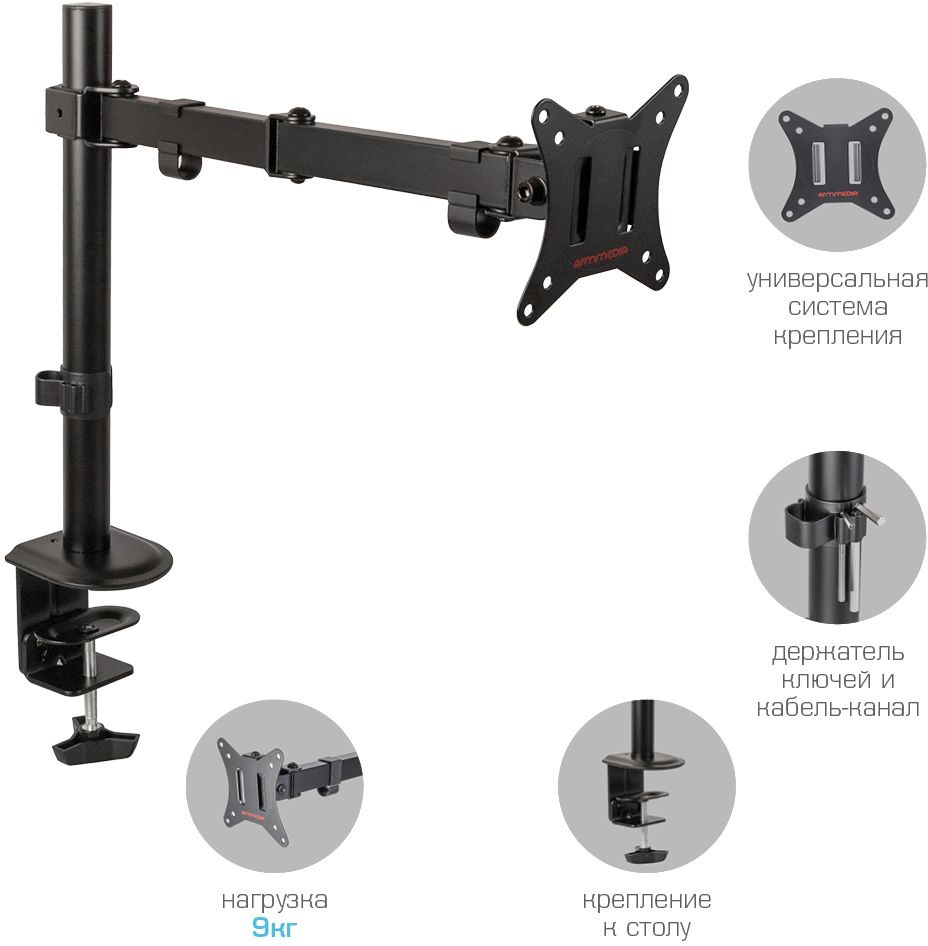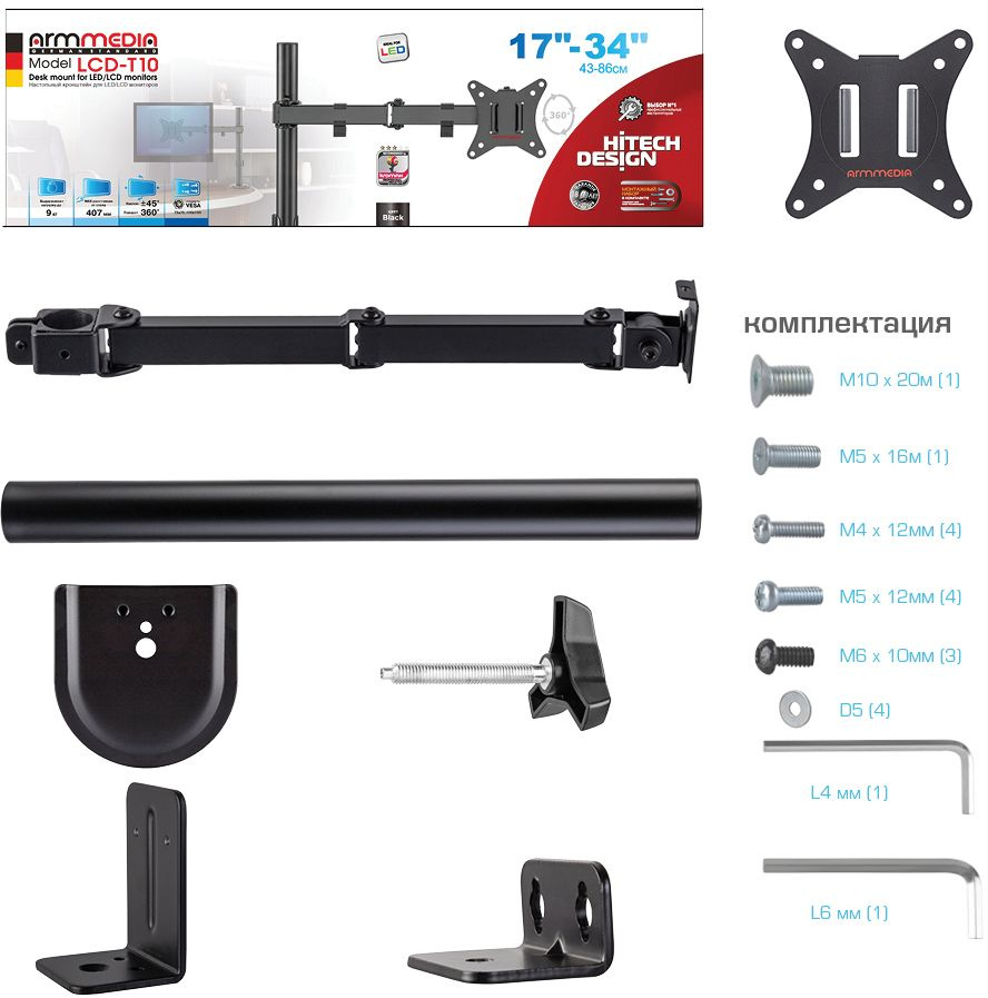 Кронштейн для мониторов Arm Media LCD-T10 черный 15"-34" макс.9кг настольный поворот и наклон