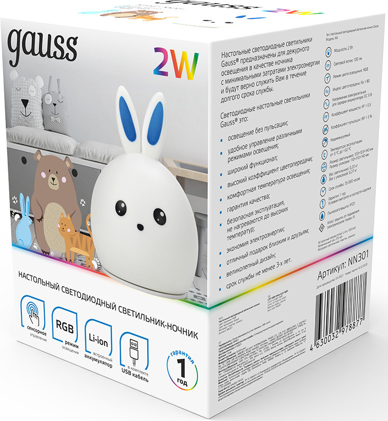 Ночник Gauss NN301 кролик белый