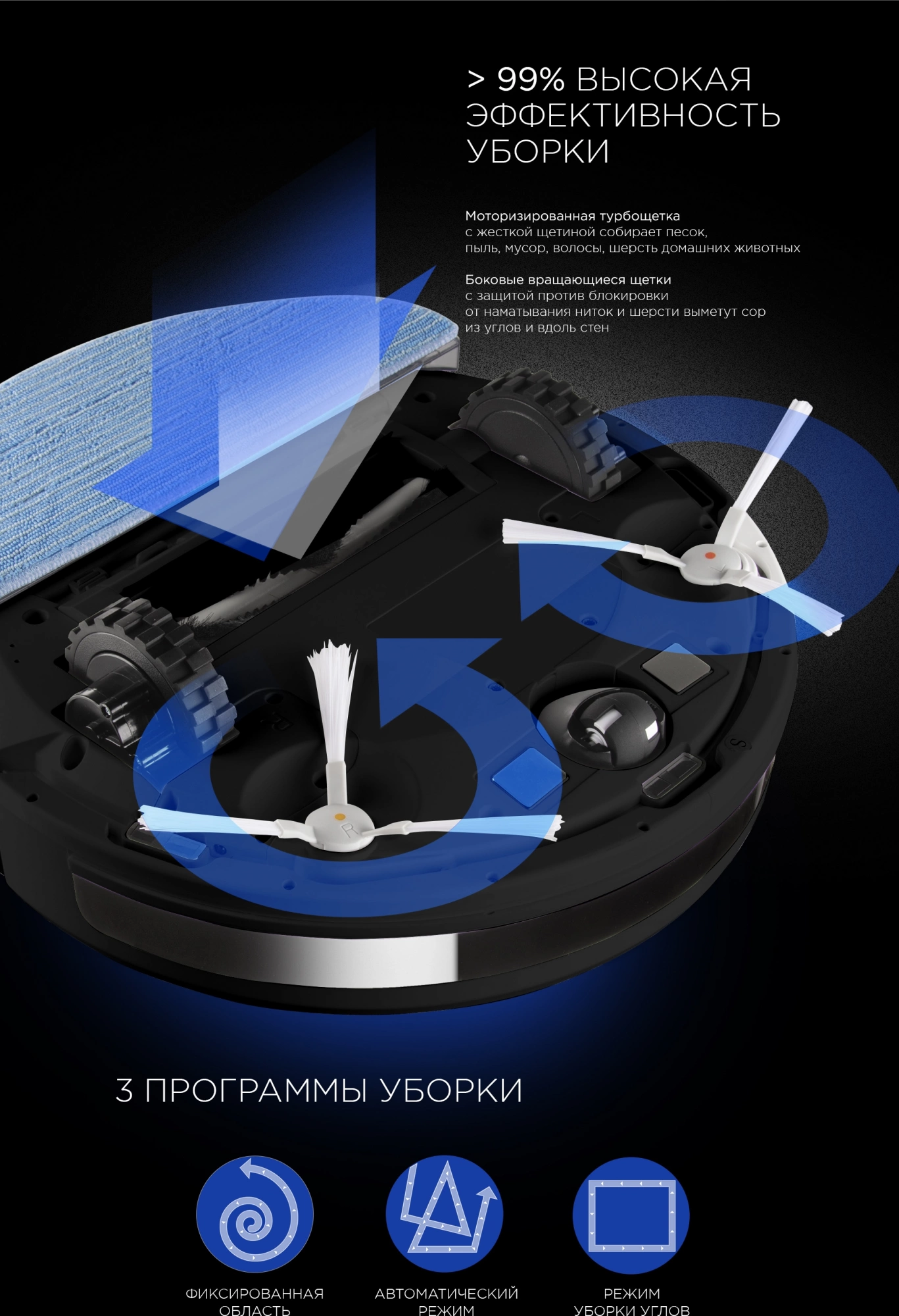- Режимы движения робота-пылесосавдоль стены, очистка углов, по спирали