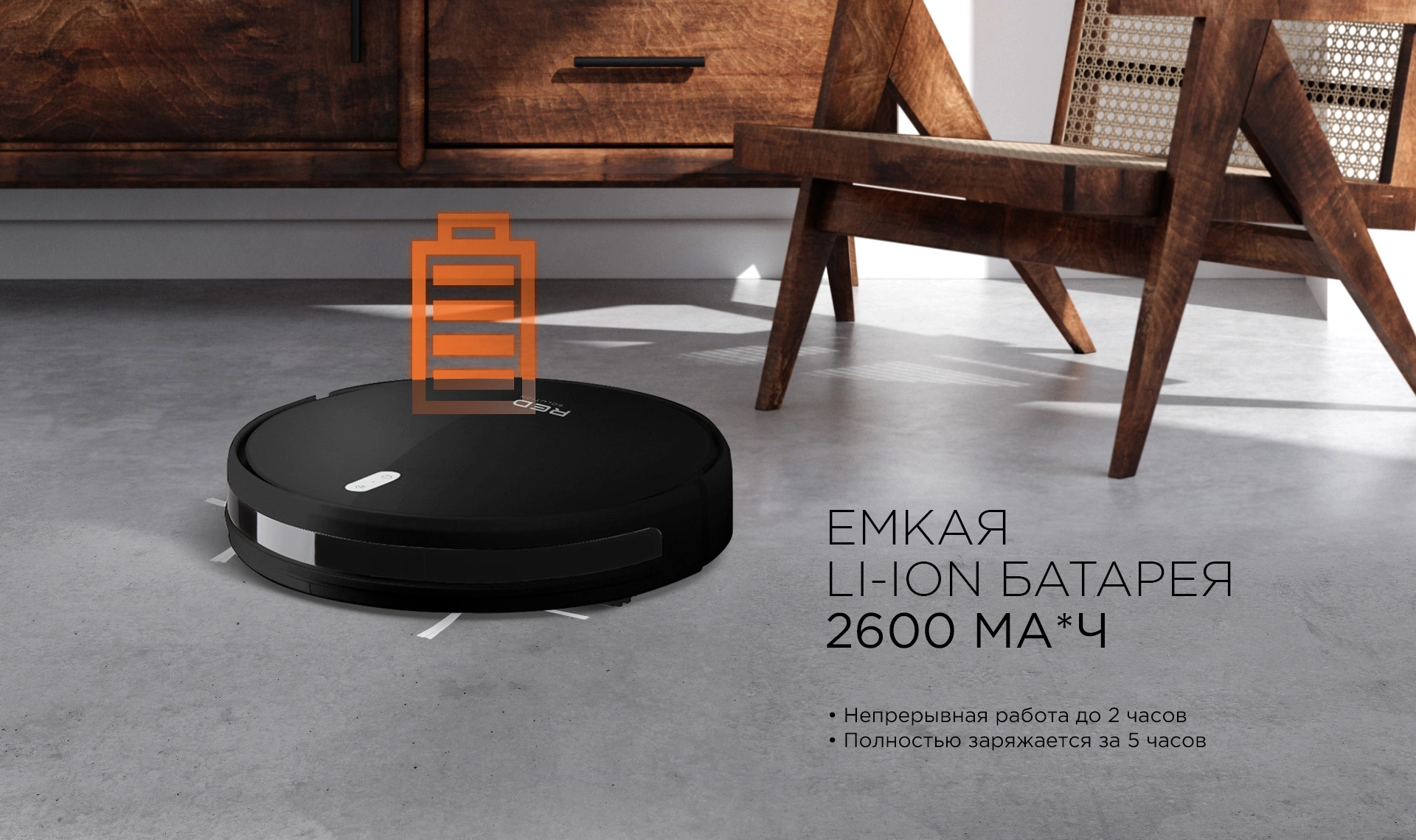 RV-R6040S – это инновационный робот-пылесос «2 в 1», который сделает сухую и влажную уборку. Литий-ионная батарея емкостью 2600 мА*ч обеспечит бесперебойную работу робота-пылесоса на протяжении 120 минут – за это время RV-R6040S успеет сделать тщательную уборку даже в большой квартире.