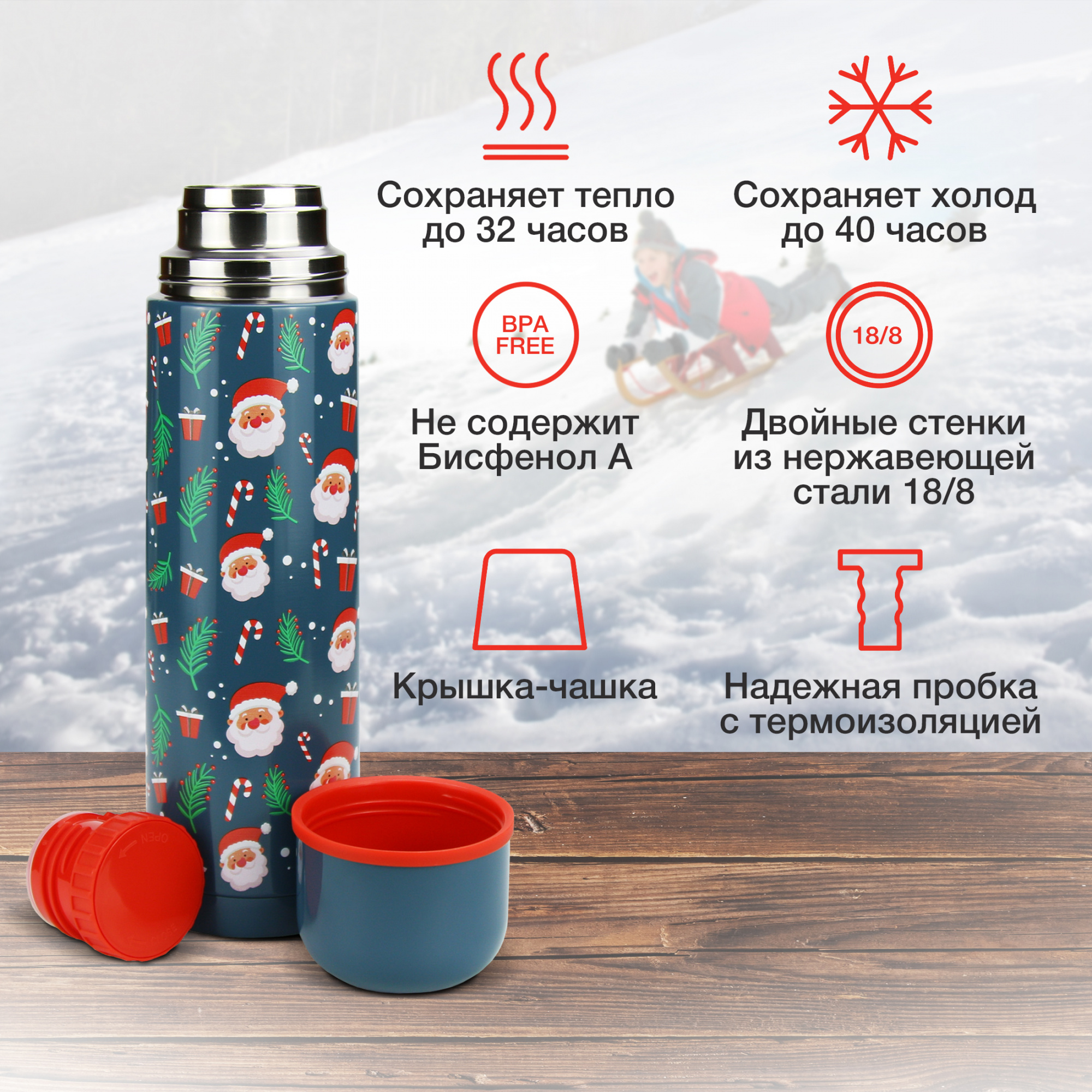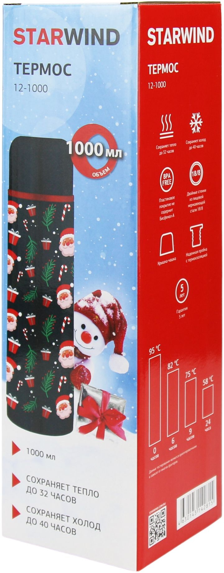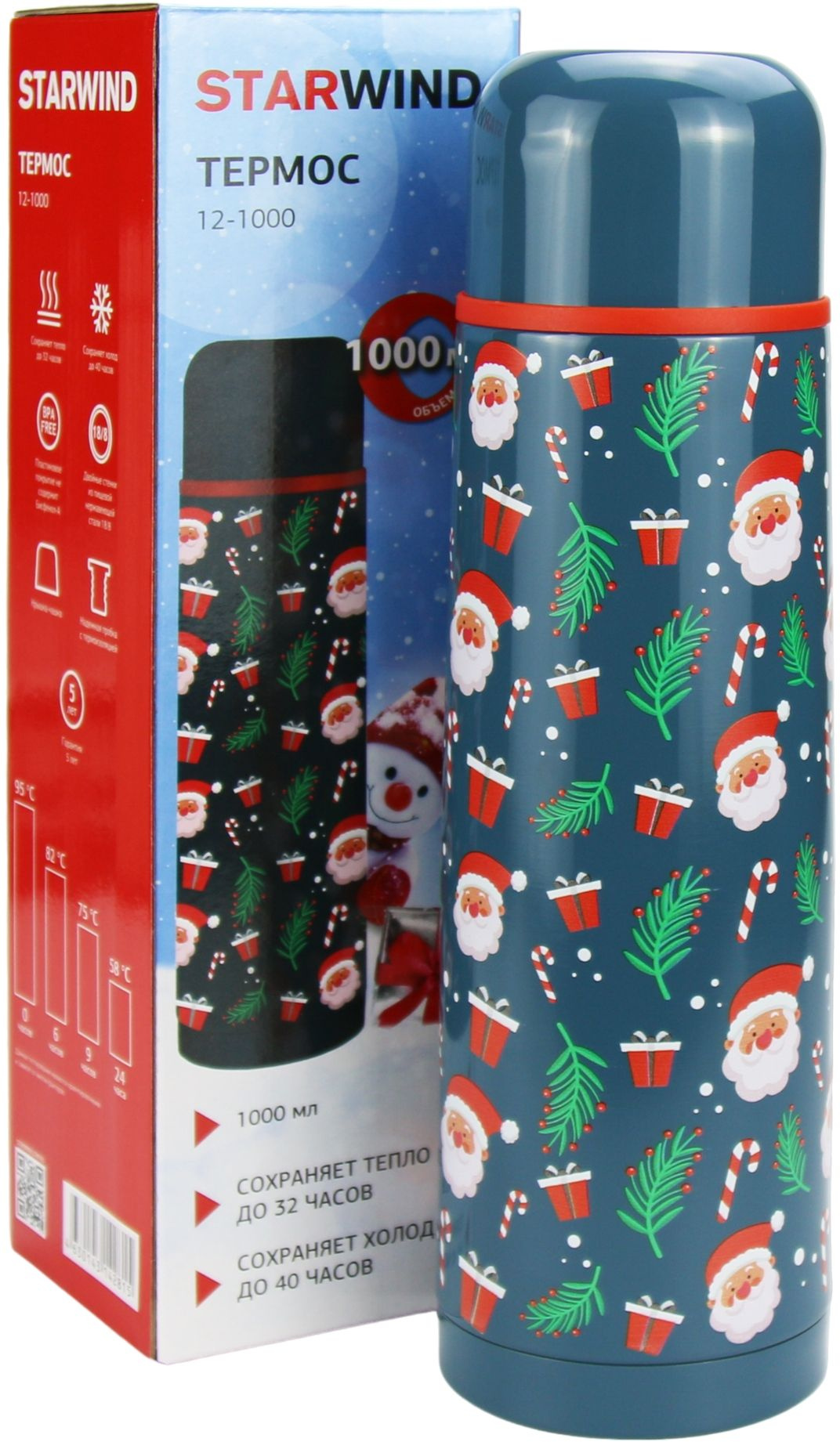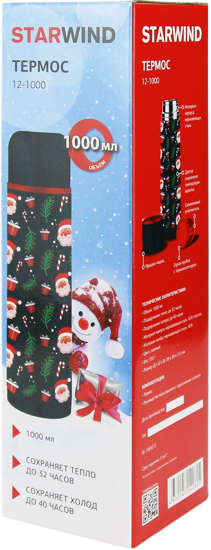 Термос Starwind New Year 12-1000 1л. зеленый/рисунок