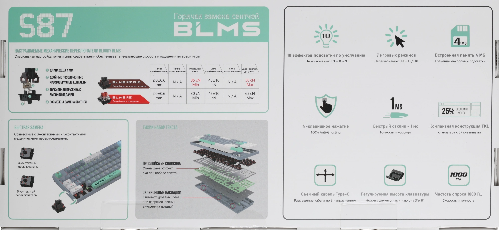 Клавиатура A4Tech Bloody S87 Energy механическая серый/зеленый USB for gamer LED (S87 USB ENERGY ASH)