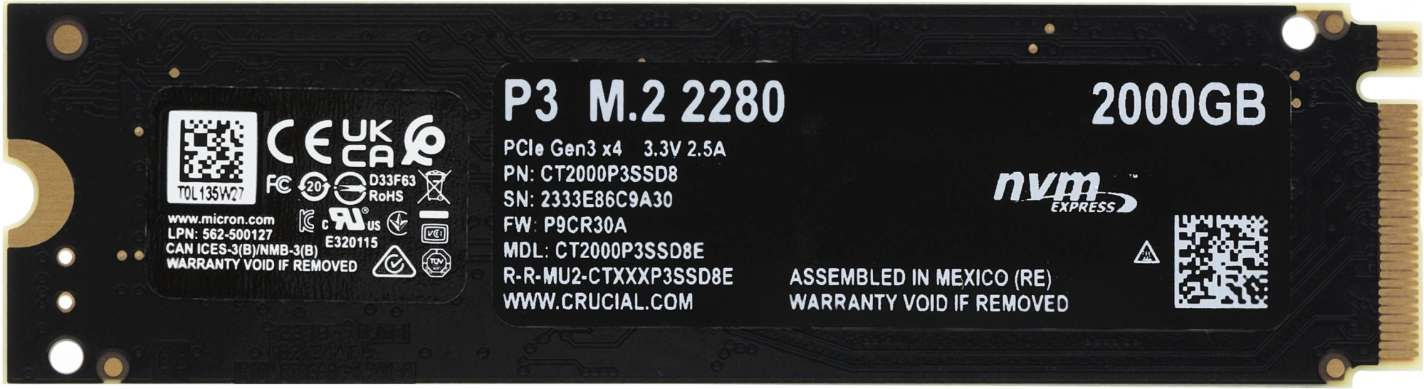 Накопитель SSD Crucial PCIe 3.0 x4 2TB CT2000P3SSD8 P3 M.2 2280